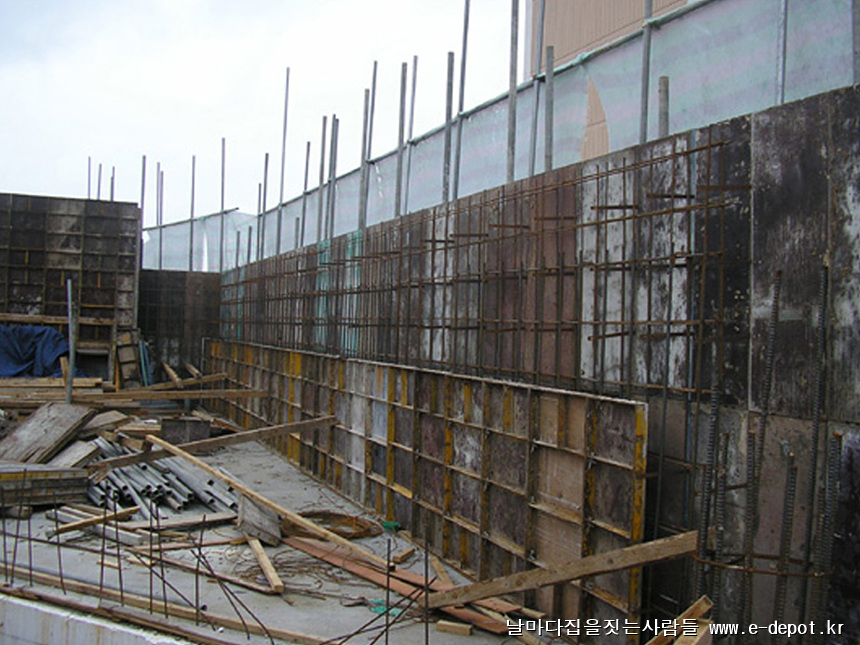 형틀거푸집을 조립하고 철근배근을 하여 콘크리트 타설을 하는 과정입니다.