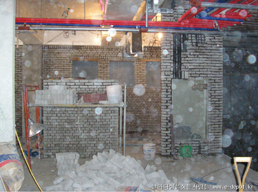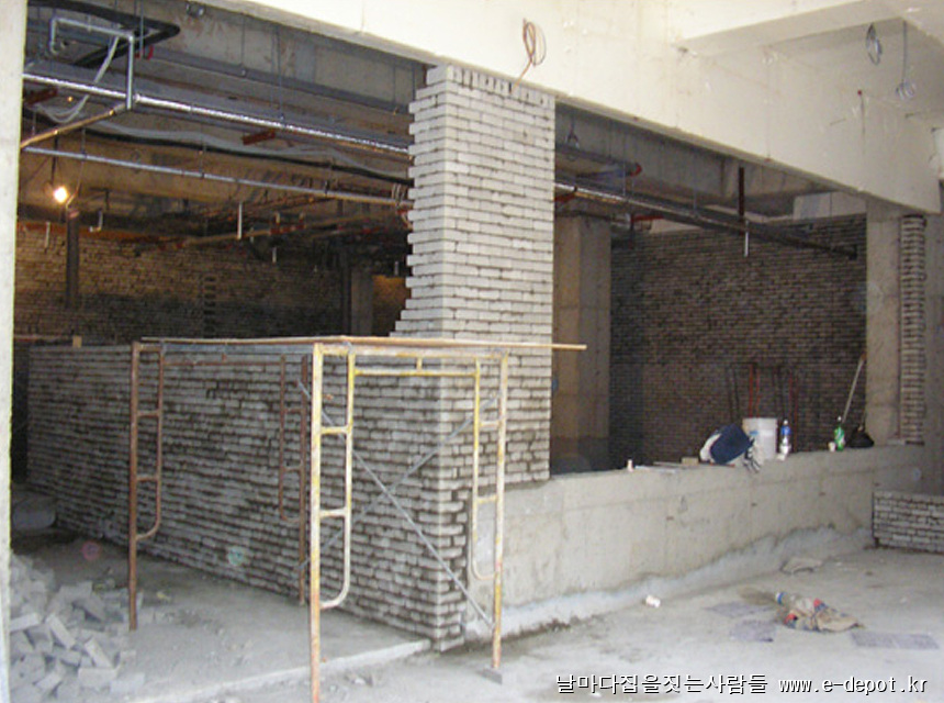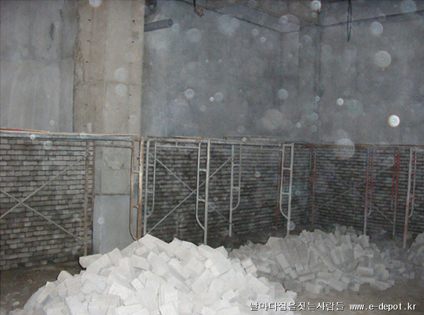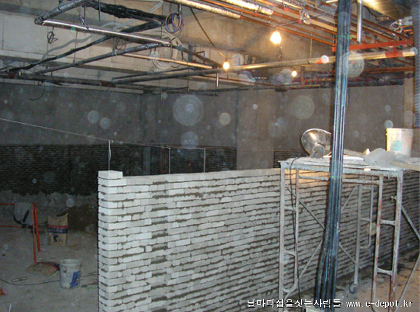 칸막이 벽 시멘트벽돌쌓기 과정입니다.