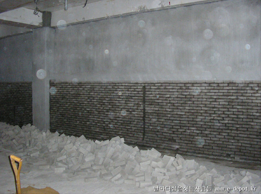 지하실 외벽의 경우 결로방지를 위해서 옹벽 외부에서 단열을 해주는 것이 좋은 방법이지만 현장 여건상 외부에서 단열을 하기가 어려울 경우 부득이 내부에서 단열을 하게 됩니다. 이때 단열재를 시공한 후에 벽돌을 쌓아 벽을 하나 더 만들어 주게 되는데 이때 벽을 보호벽이라고 부르지요. 보호벽은 건식으로 작업할 수도 있으나 아직까지 습식공법인 벽돌쌓기로 보호벽을 하는 경우도 많습니다. 지하 외부벽의 경우 방수도 중요하지만 결로에 대비한 단열도 중요한 부분이니 방수와 단열, 2가지를 절대 놓쳐서는 안되겠습니다.