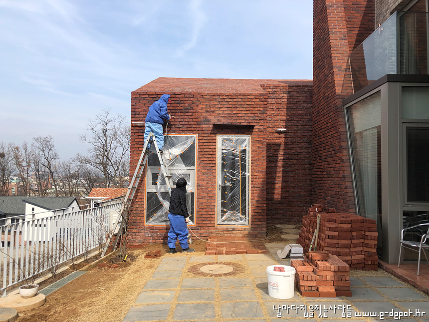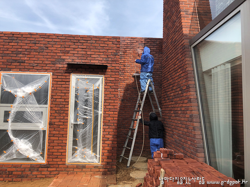 전원주택시공. 노출콘크리트 코팅 및 파벽돌 발수제 도포과정