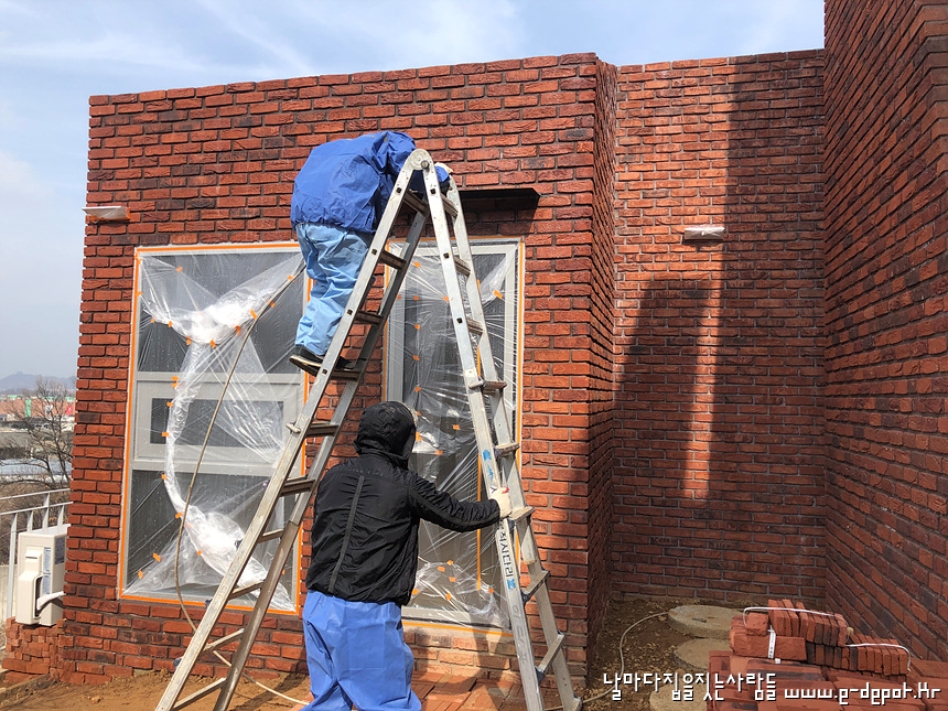 전원주택시공. 노출콘크리트 코팅 및 파벽돌 발수제 도포과정