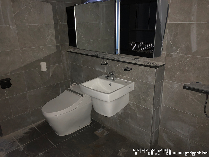 거실 공용화장실의 양변기,세면기등 도기 설치 사진입니다.