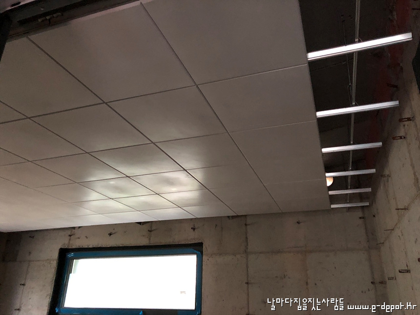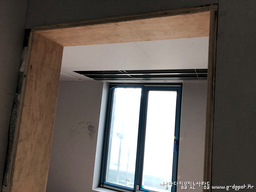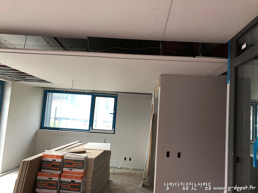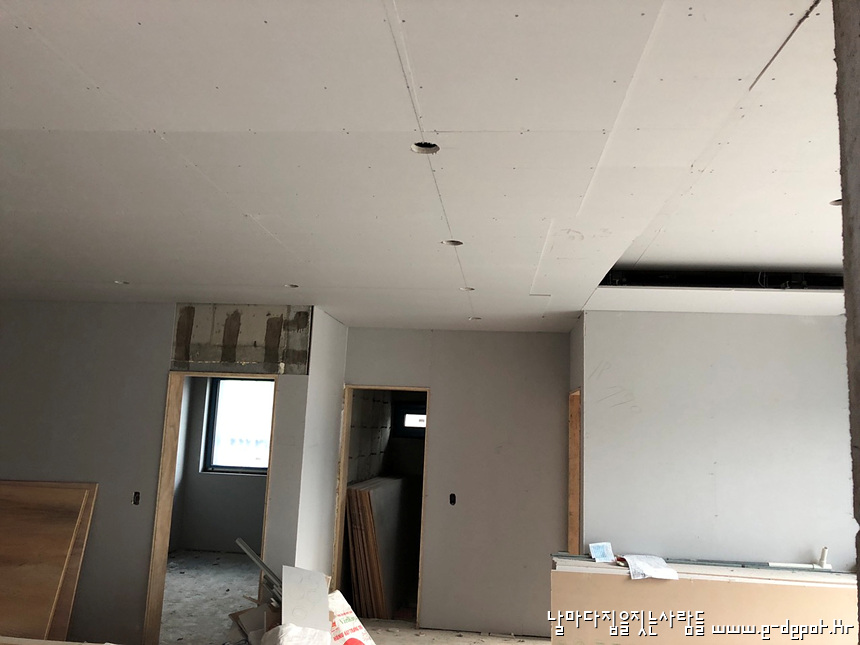 거실 천정과 벽체 석고보드 취부 사진입니다.