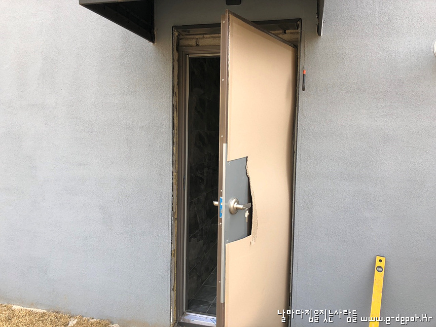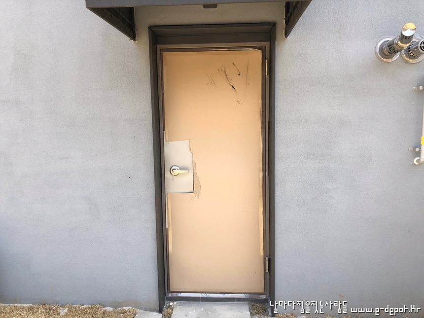 외부 방화문 주변 후레싱 처리 사진입니다.