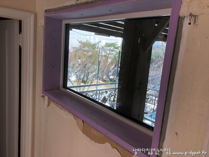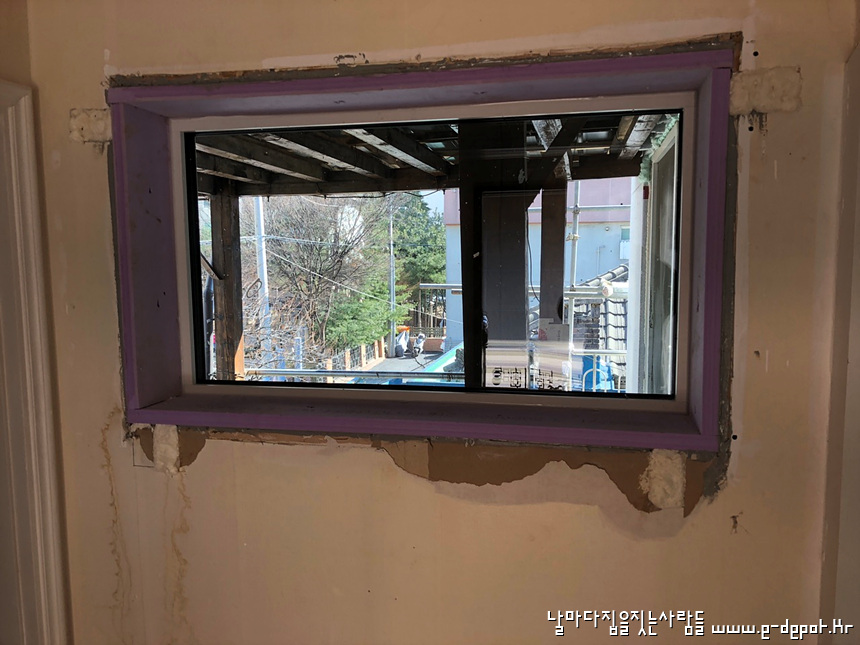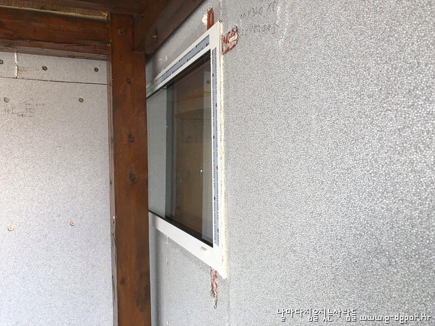 창호 주변 단열재 취부 전 사진입니다.
