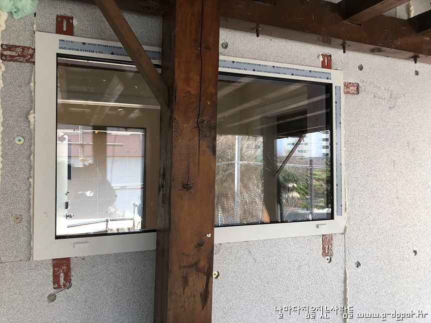 창호 주변 단열재 취부 전 사진입니다.