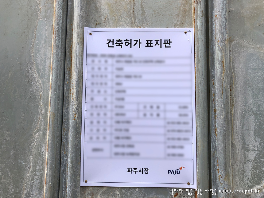 EGI가설 휀스 설치 후 건축허가표지판을 잘 보이는곳에 설치하도록 합니다.