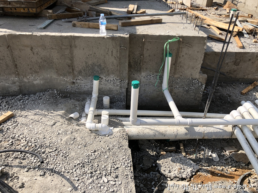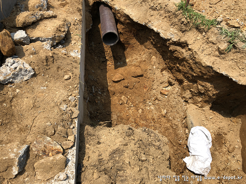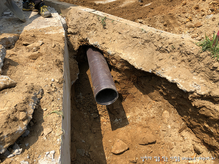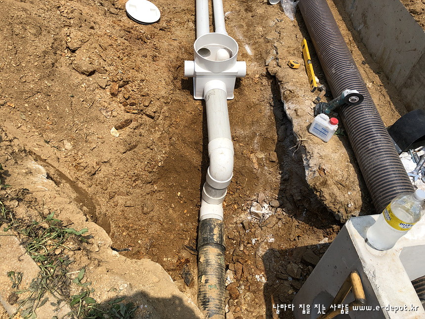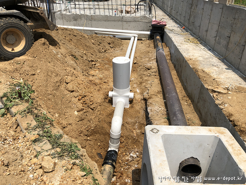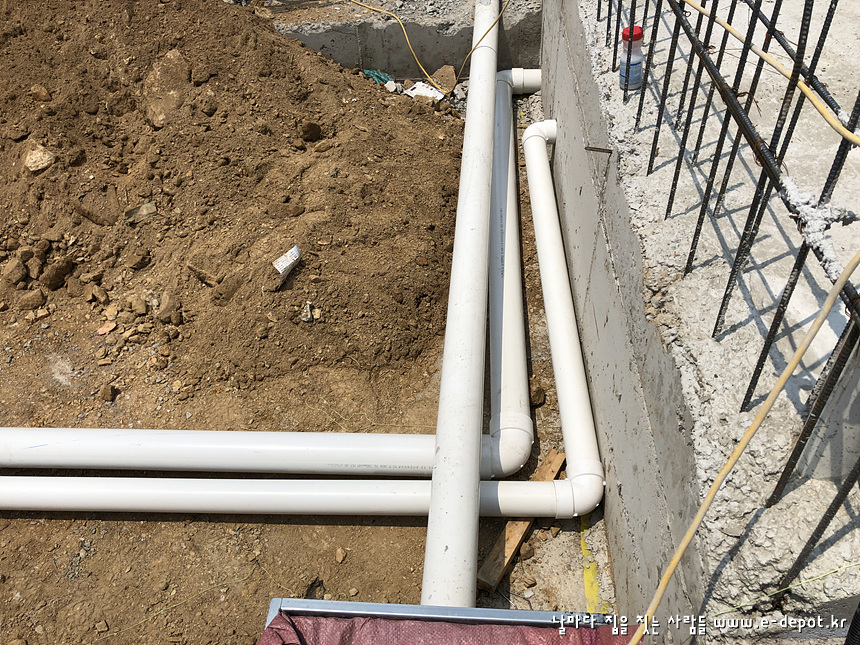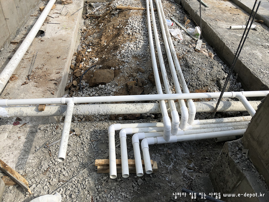 기초공사를 마치고 나면 되메우기 전에 우수관 및 오수관 배관작업을 합니다.
