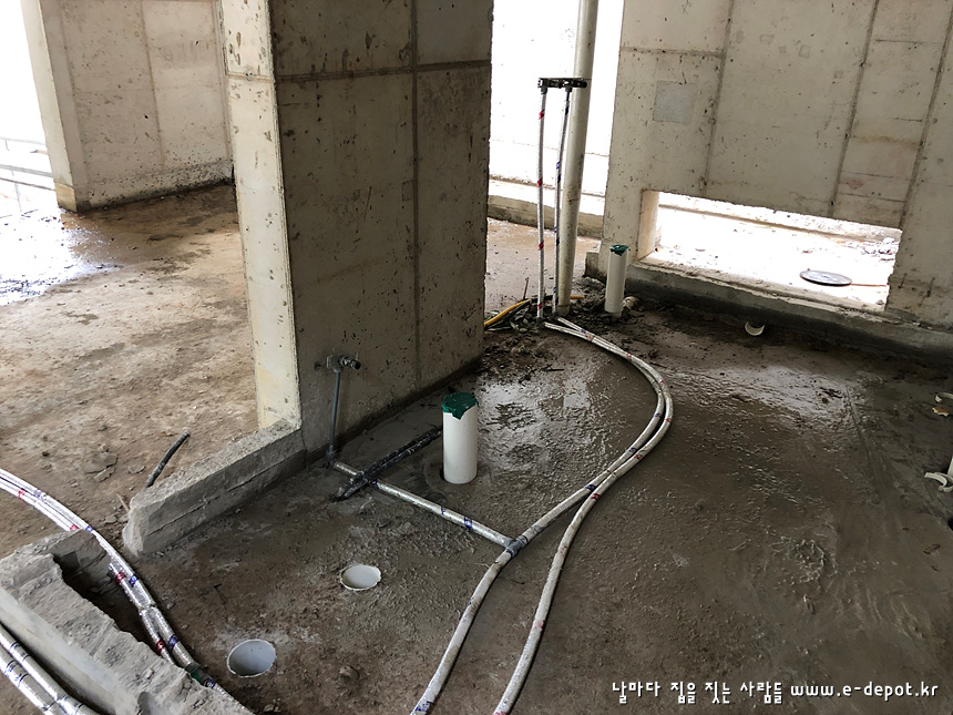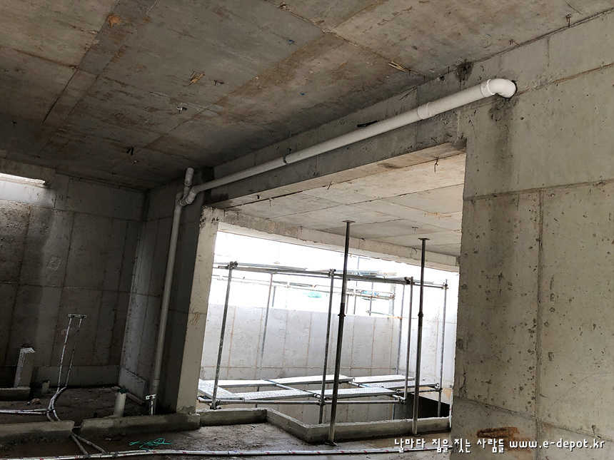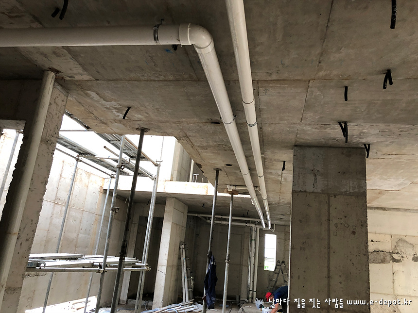 골조공사가 마무리 되고 형틀거푸집해체가 진행 된 후에 바로 이어질 작업이 설비배관 공사입니다.