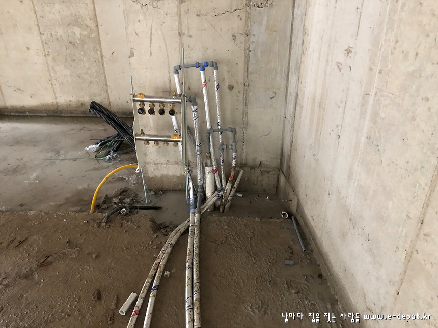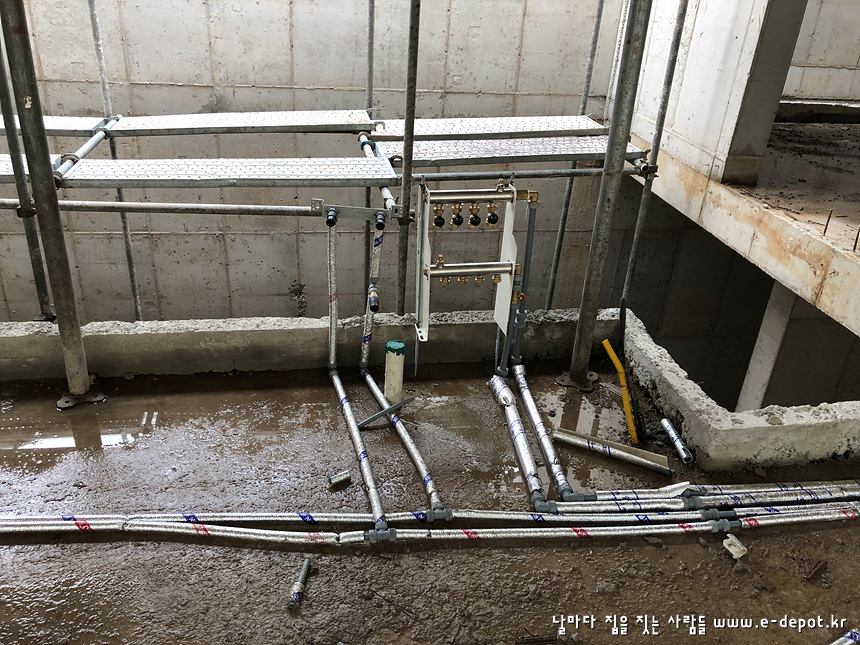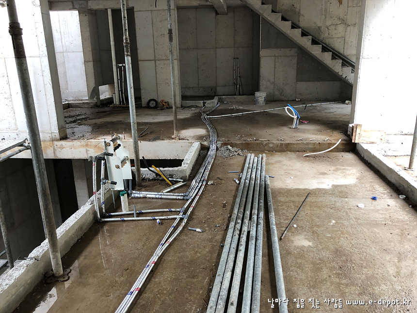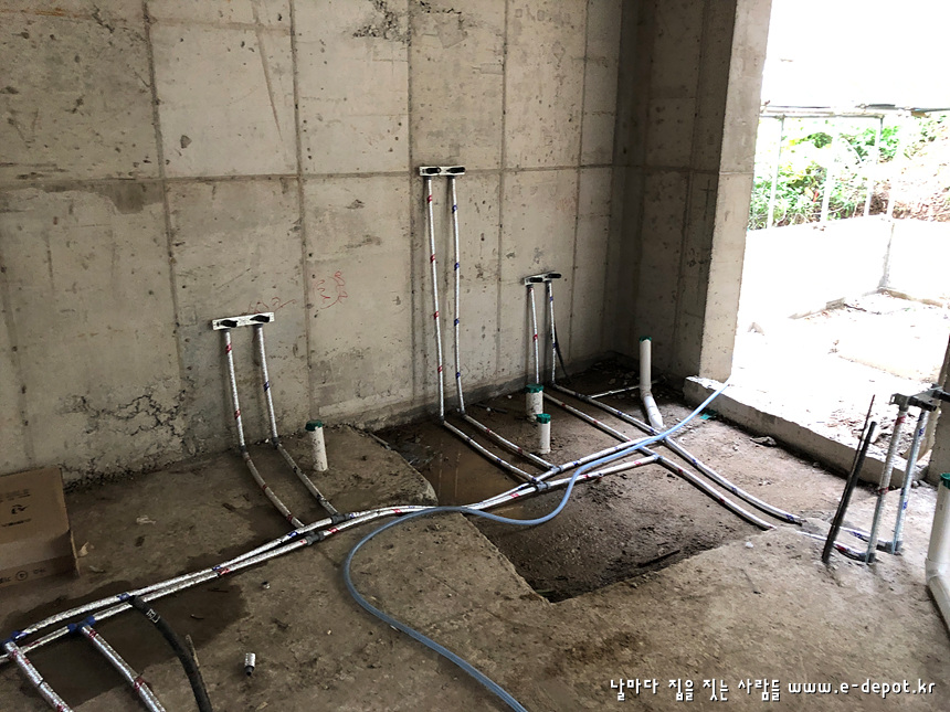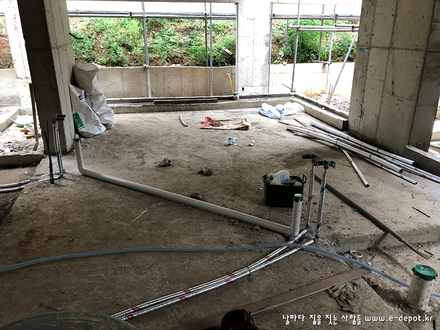 전원주택,주문주택,농가주택,철근콘크리트주택 시공전문 '날마다집을짓는사람들' 이디포 건설의 전원주택신축공사 중 설비 급수배관,위생배관 과정이었습니다.