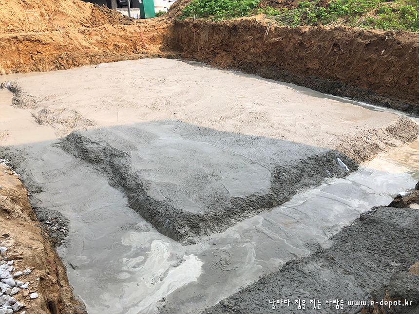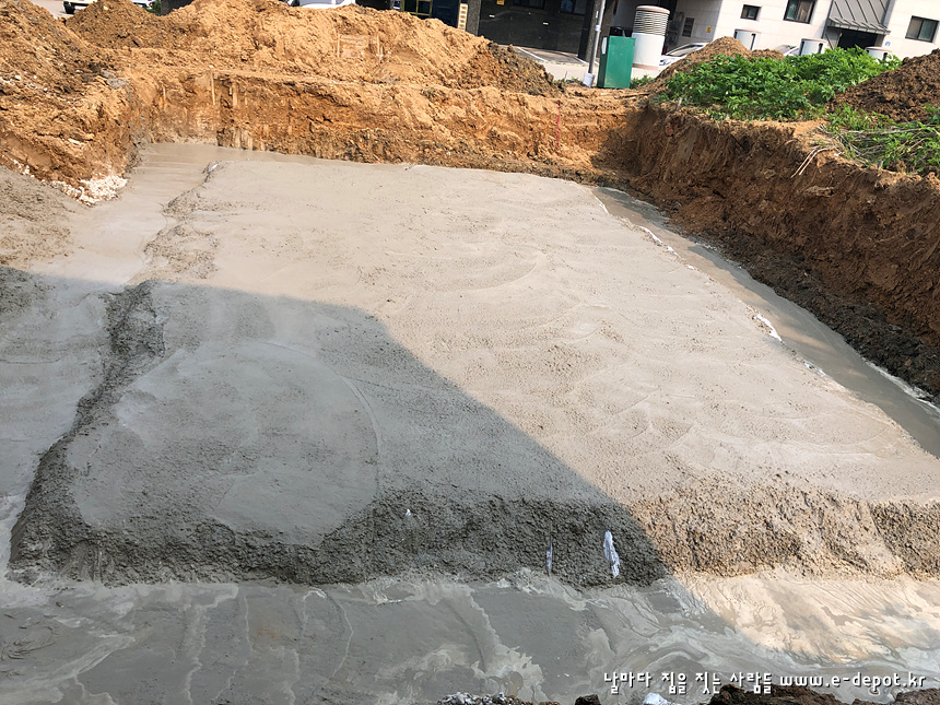 버림콘크리트 타설을 마친 사진입니다.
