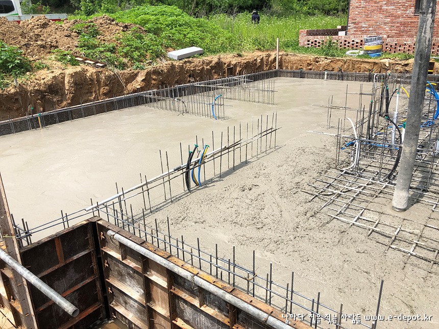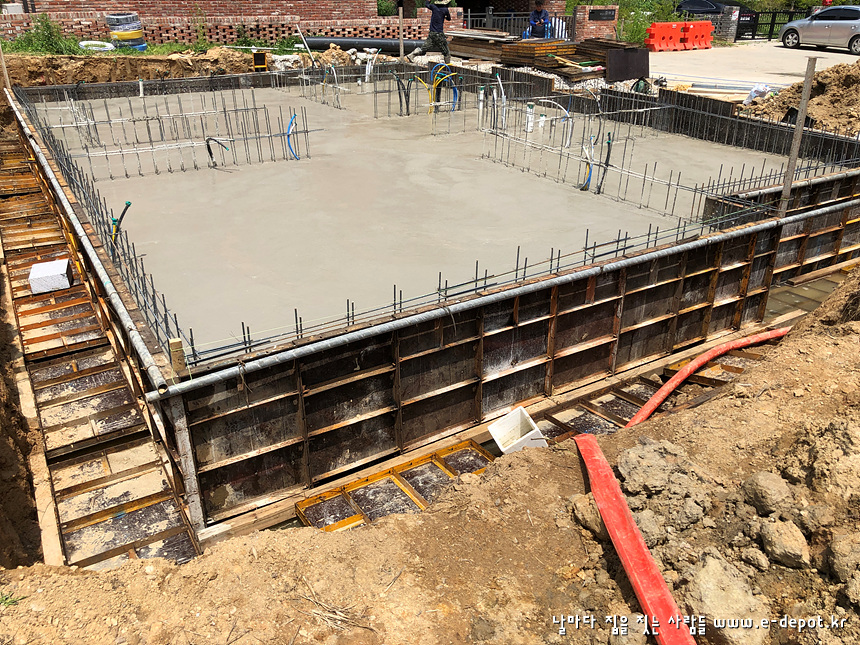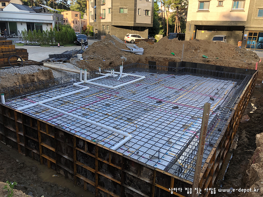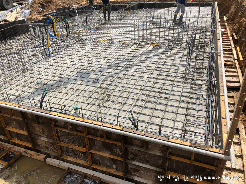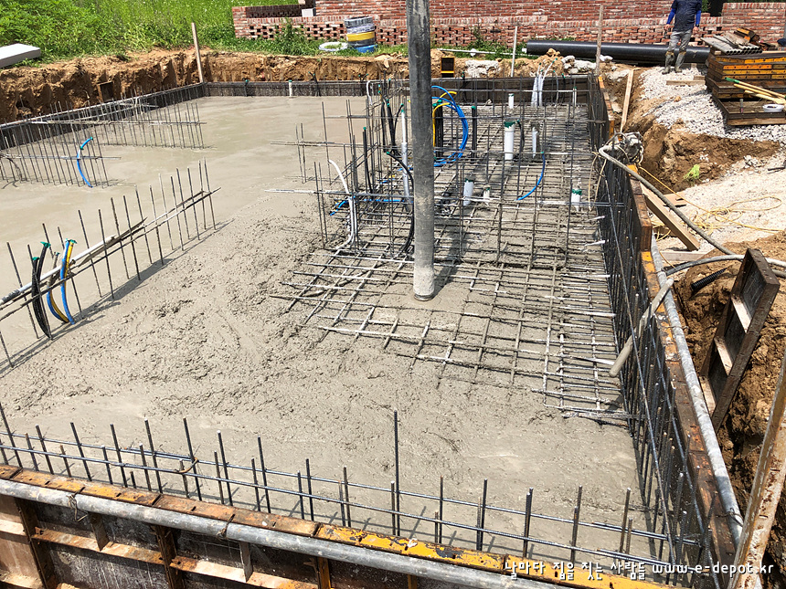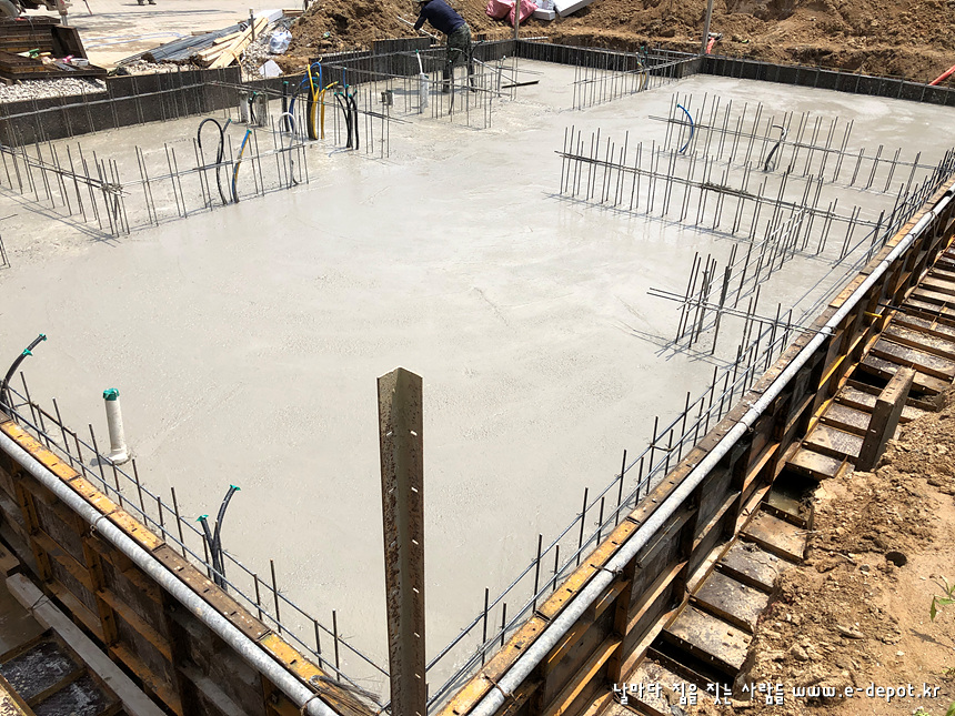 기초공사는 터파기를 한 후 버림콘크리트를 타설하고 철근배근 후 콘크리트 타설로 마무리 됩니다.