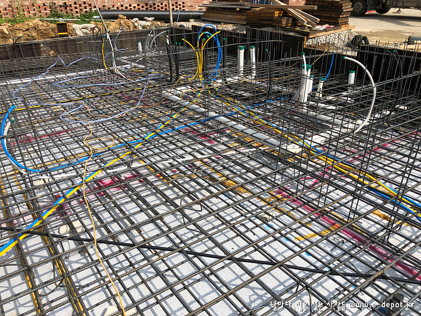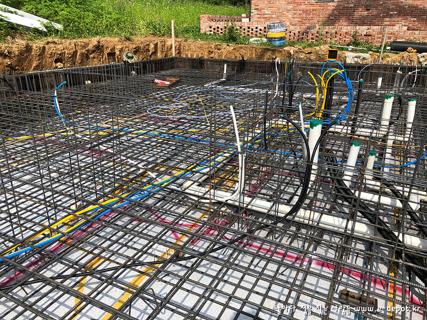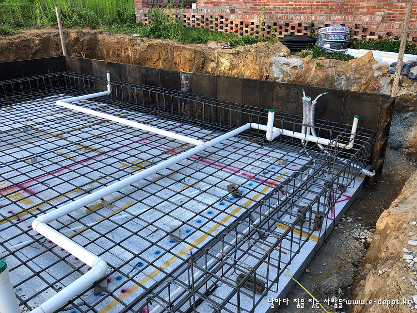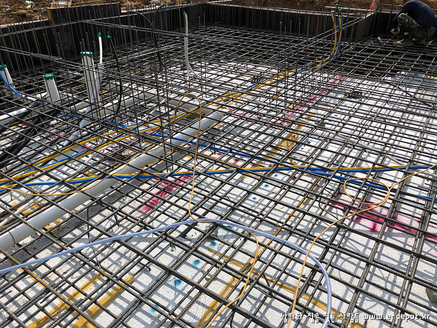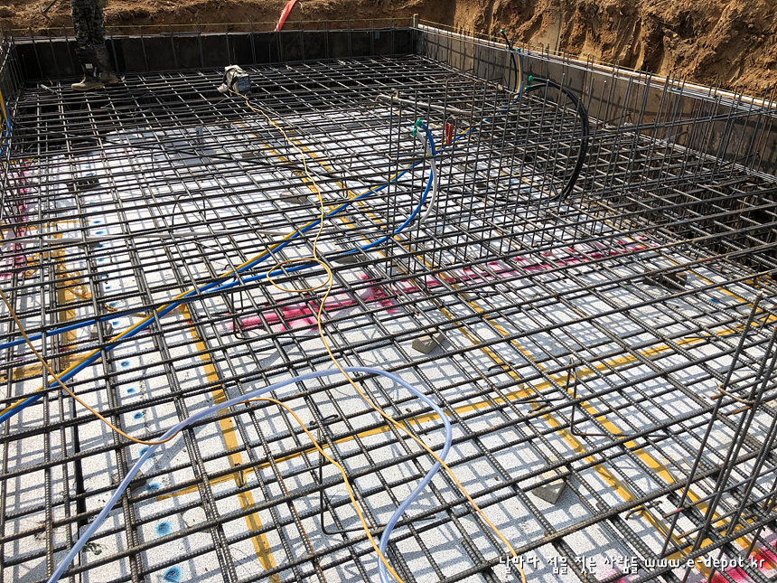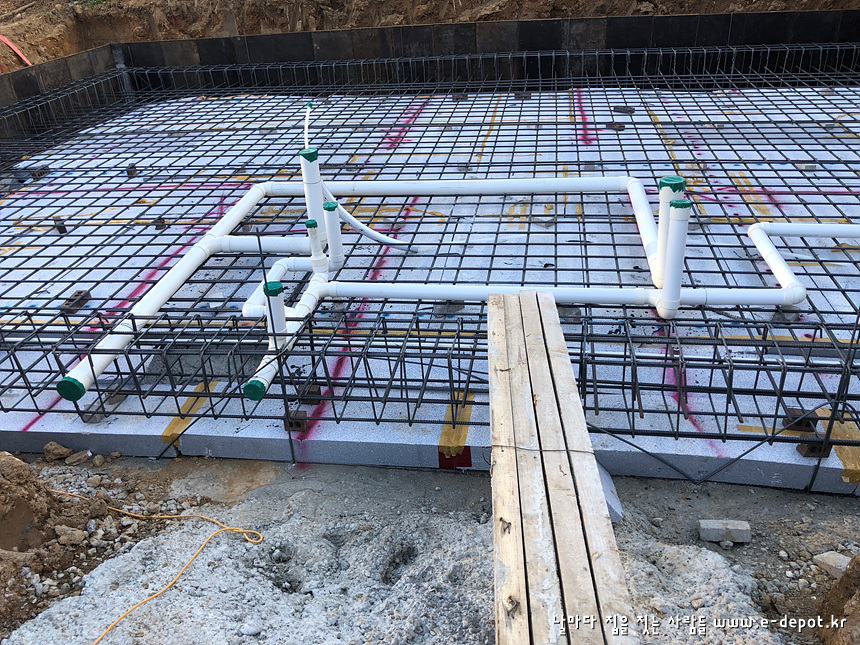 기초 하부근 배근 시 위생설비배관을 병행 합니다.