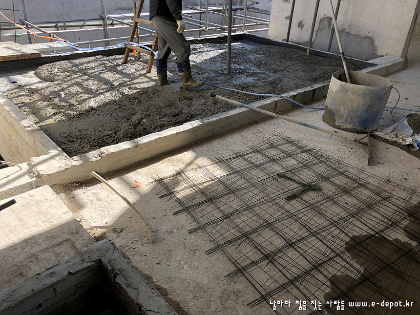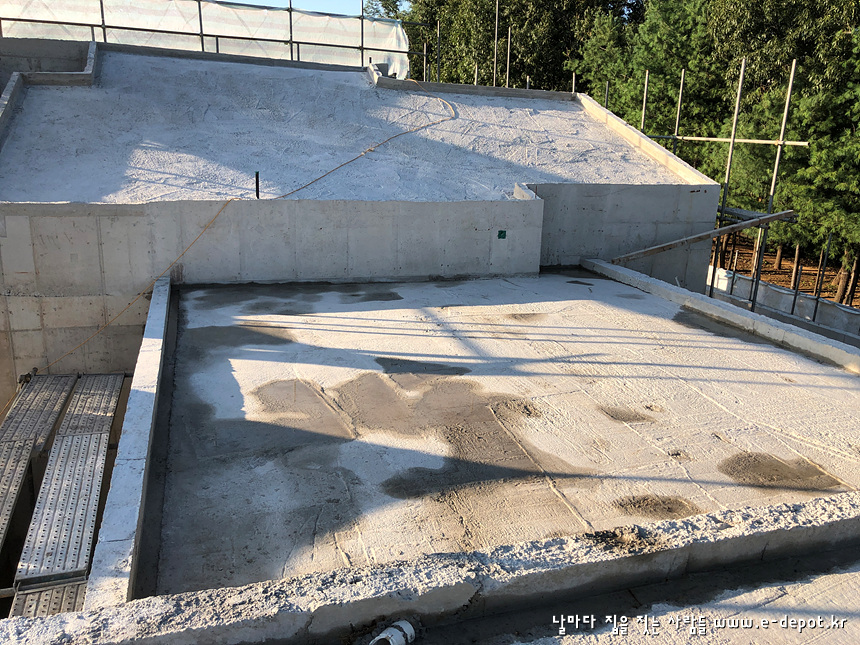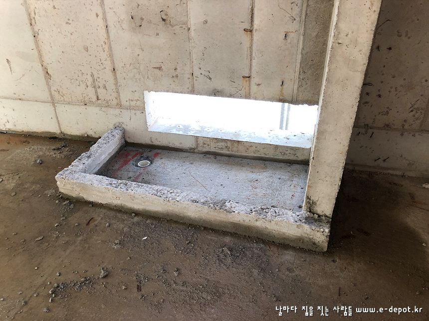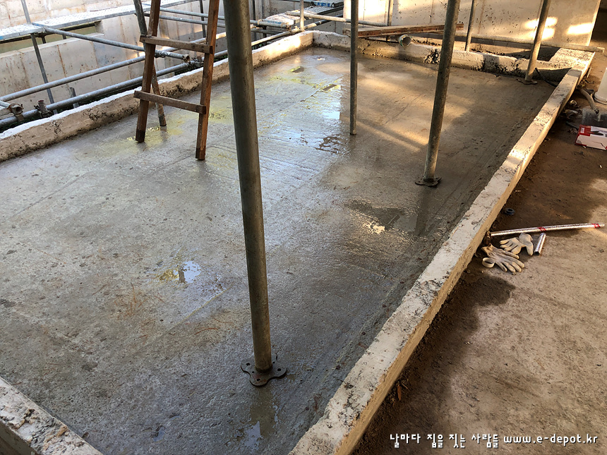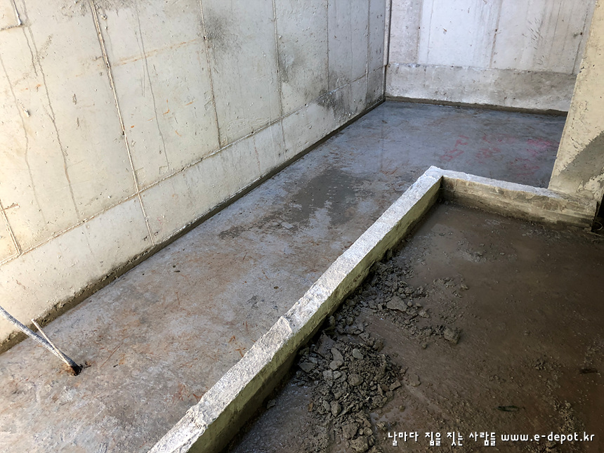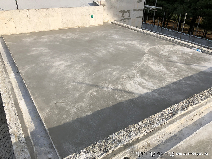 외부 비노출우레탄방수 부위는 누름콘크리트 타설로 방수층을 보호해 주어야 합니다.