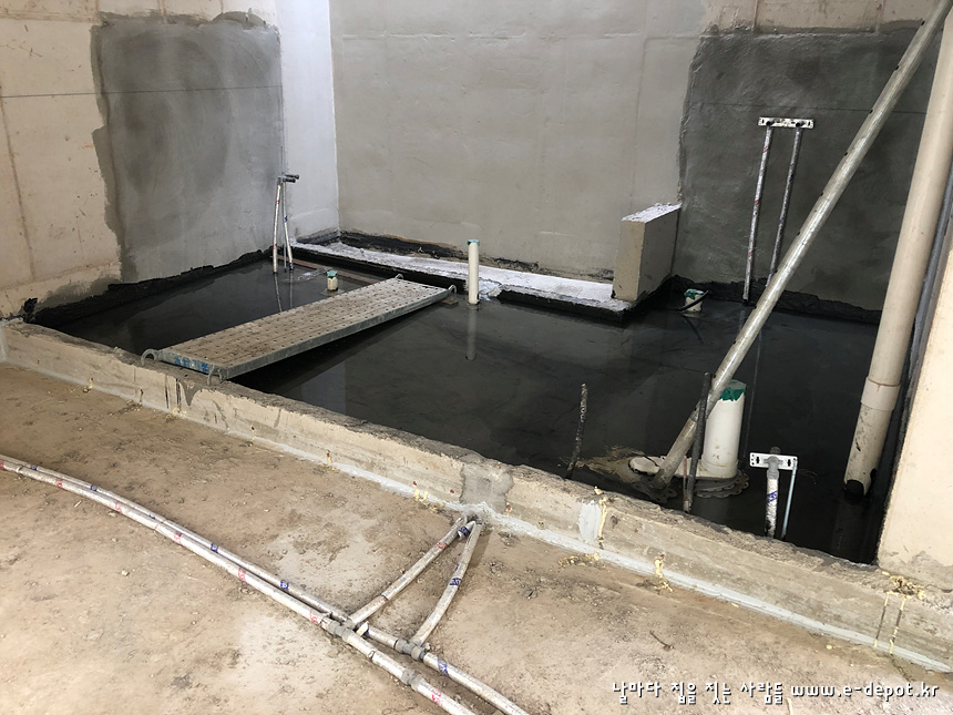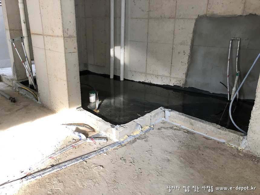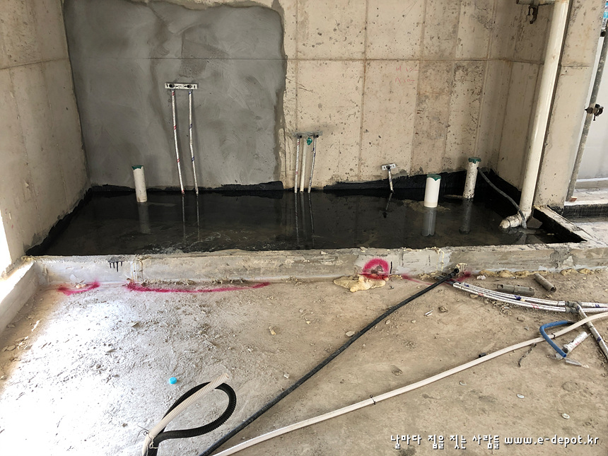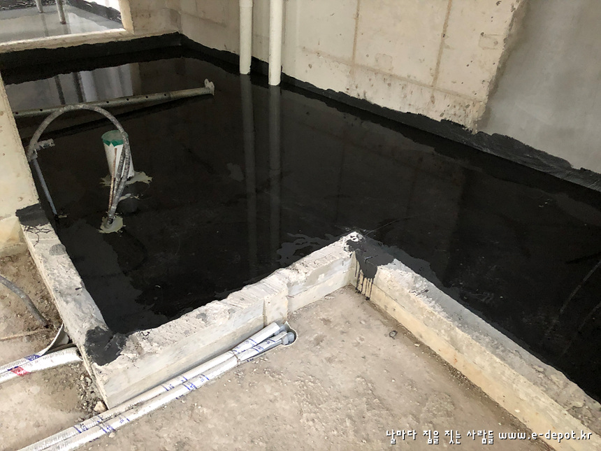 화장실은 시멘트액체방수를 1,2차로 한 후에 비노출우레탄방수를 하여 마무리 하였습니다.