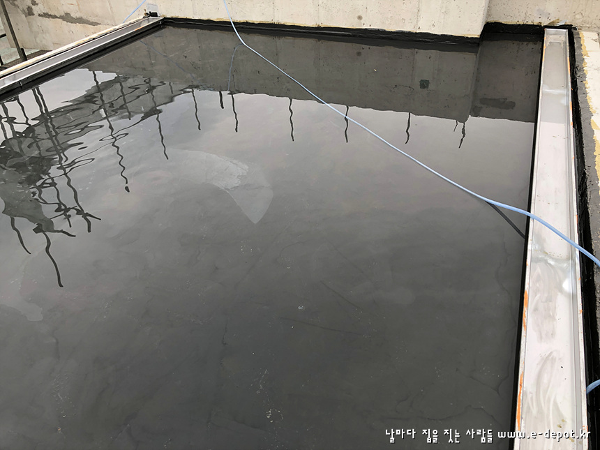 방수공사 후 담수테스트를 반드시 하여 누수여부를 눈으로 직접 확인한 후 다음 공정으로 진행하기를 권장합니다.