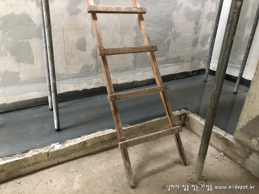 부득이 공종상 비계철거전에 방수를 한 경우 비계철거 후 방수보강작업을 하여 방수를 마무리 하도록 합니다.