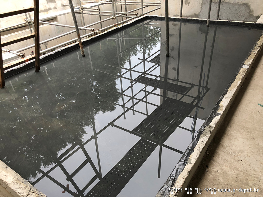 방수공사 후 담수테스트를 반드시 하여 누수여부를 눈으로 직접 확인한 후 다음 공정으로 진행하기를 권장합니다.