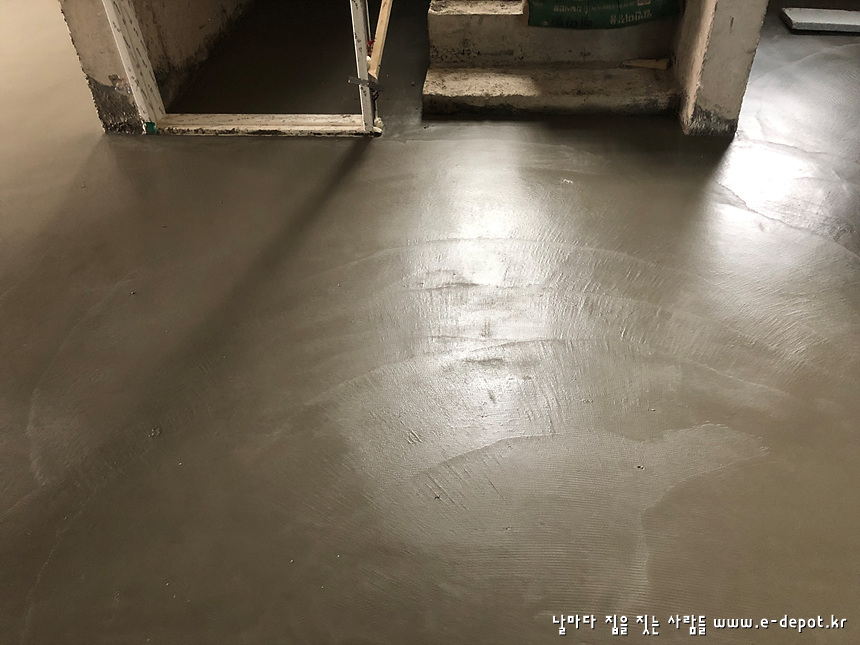 바닥몰탈 타설면의 2차 면고르기를 완료한 사진입니다.