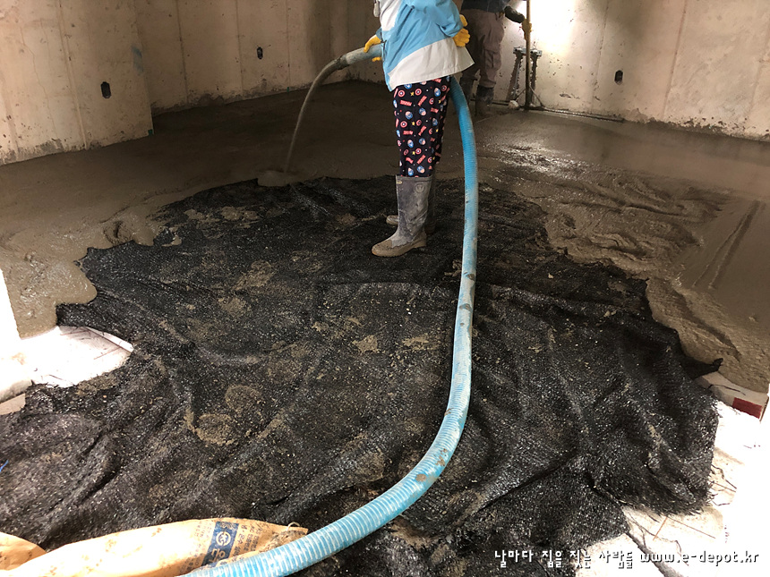 - 단열재 + 난방코일깔기 + 바닥몰탈타설
