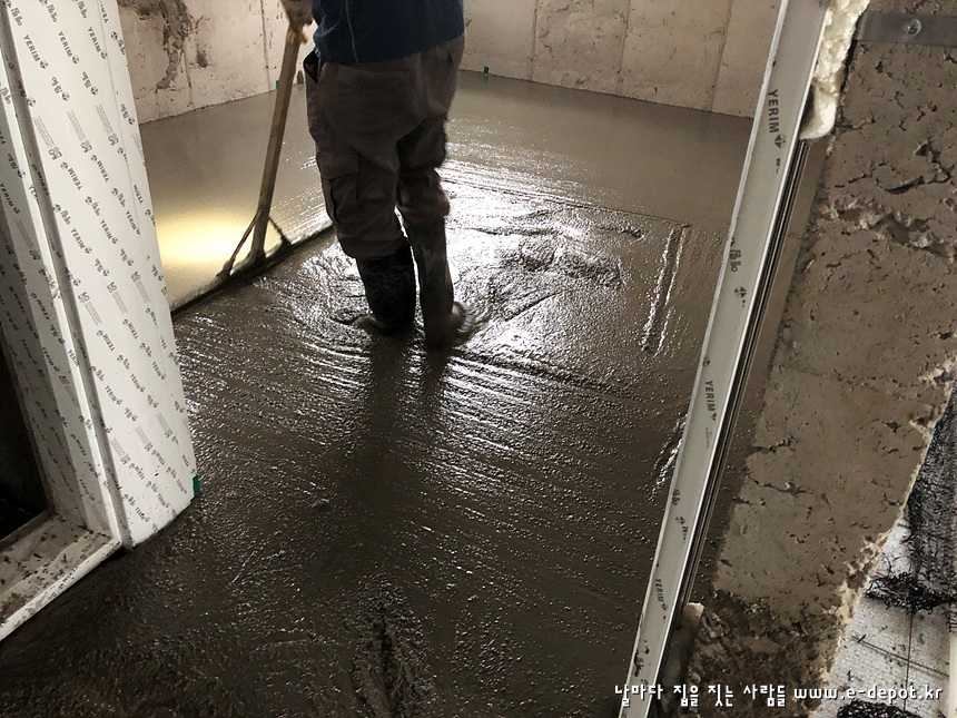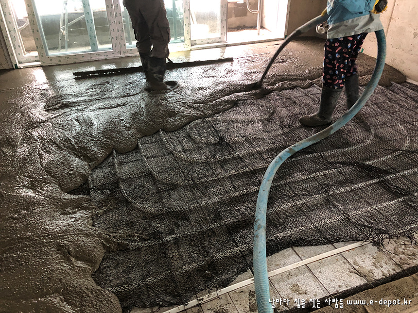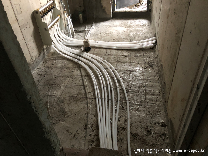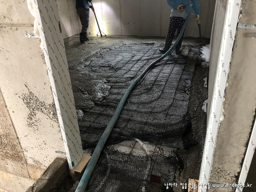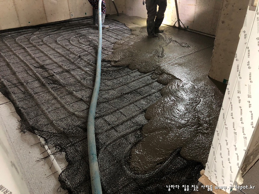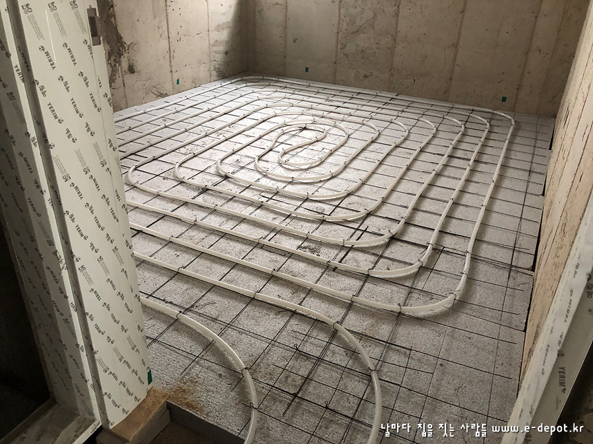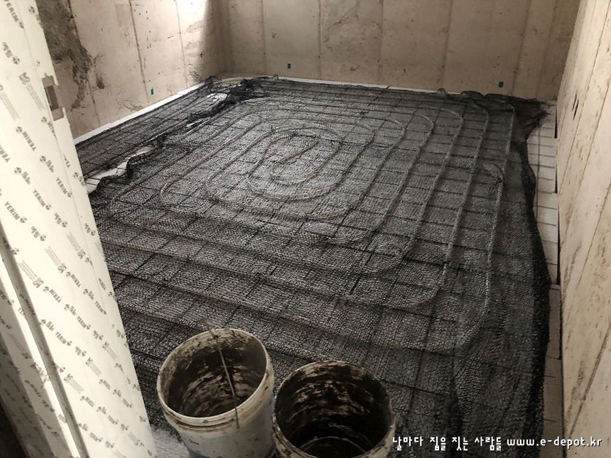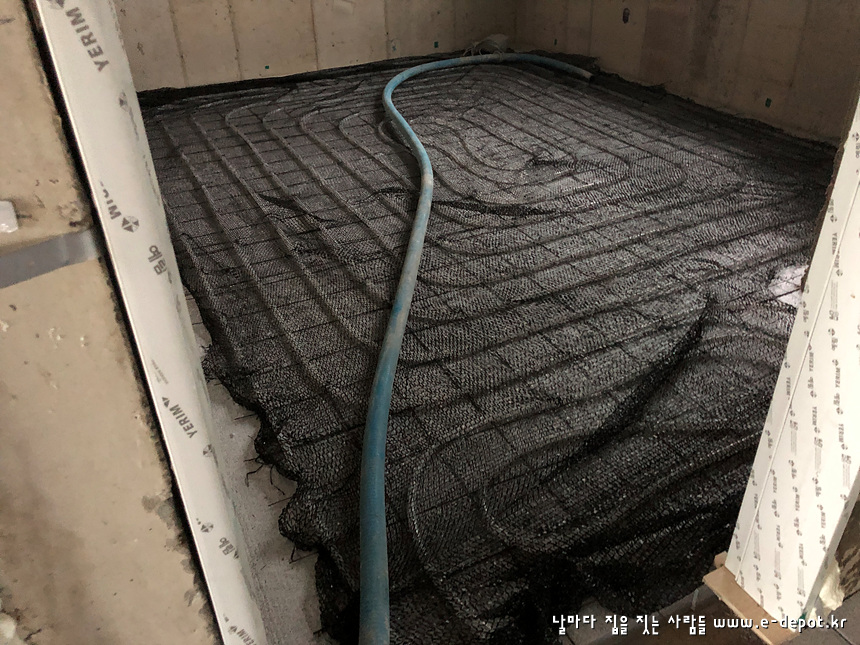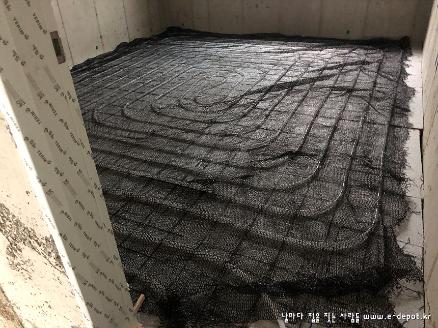 - 단열재 + 난방코일깔기 + 바닥몰탈타설