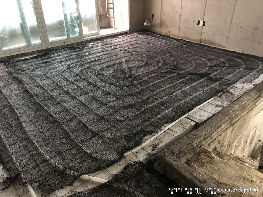 단열재 위에 난방코일을 까는 경우 와이어메쉬를 깔고 그 위에 난방코일을 깔게 됩니다.
