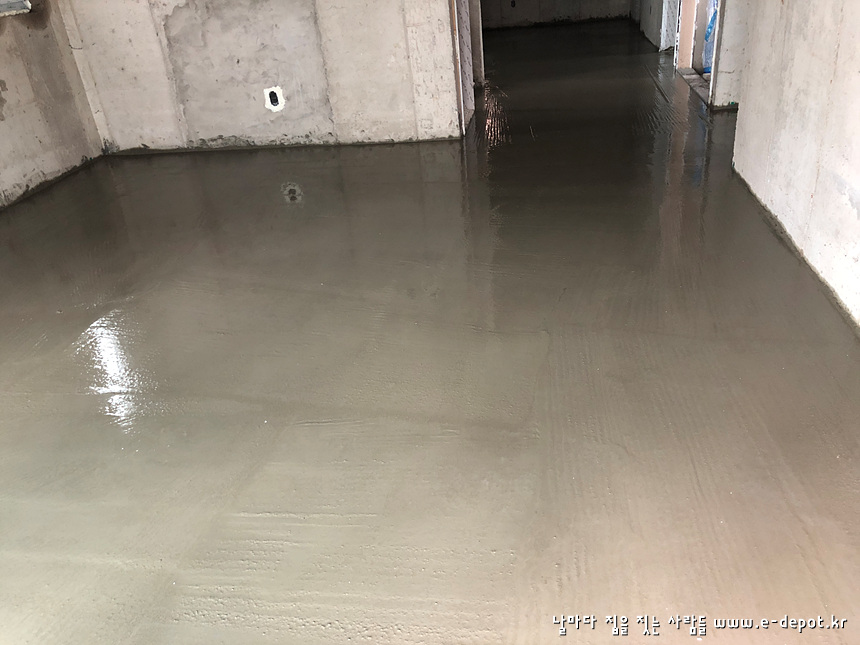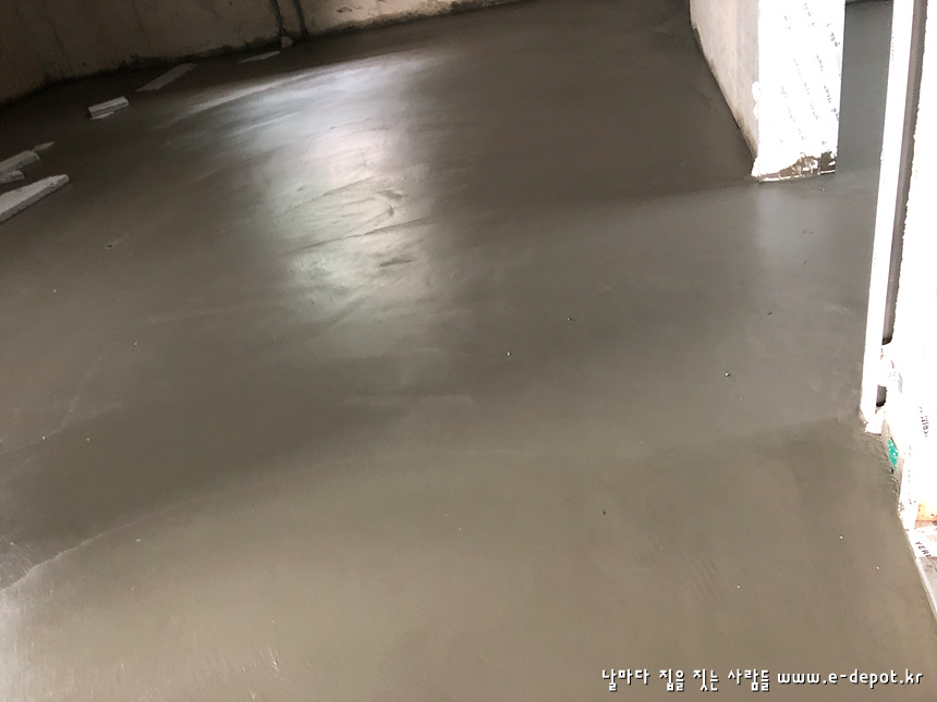 바닥몰탈 타설면의 2차 면고르기를 완료한 사진입니다.