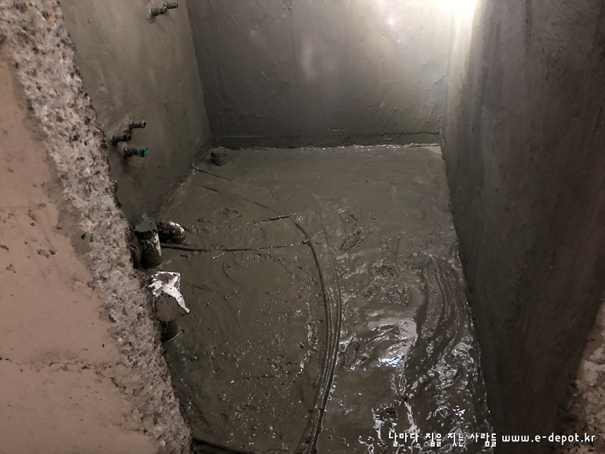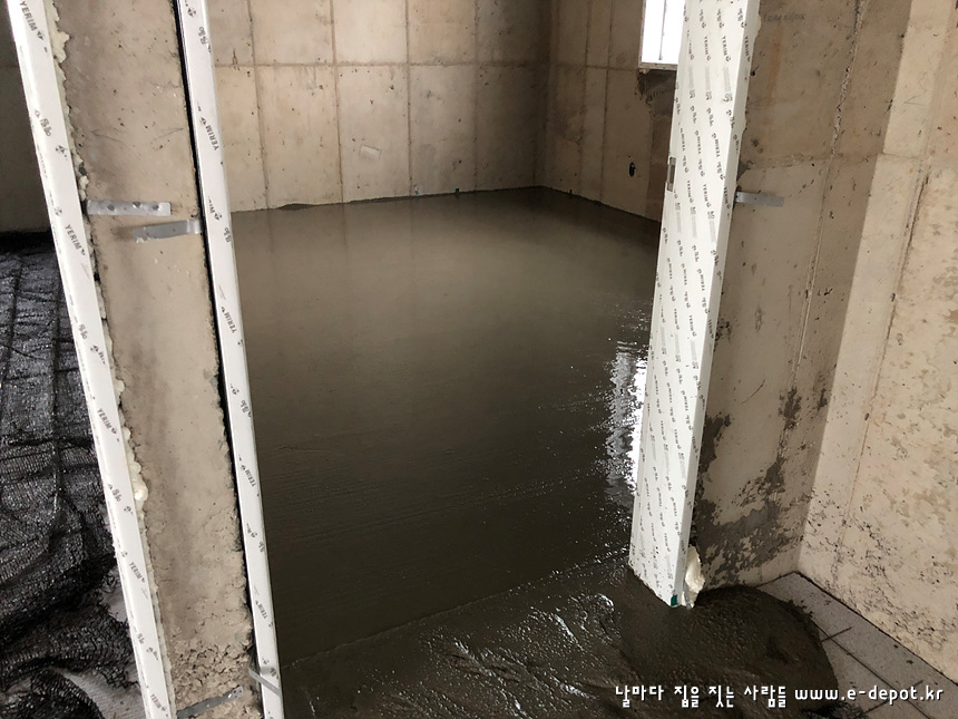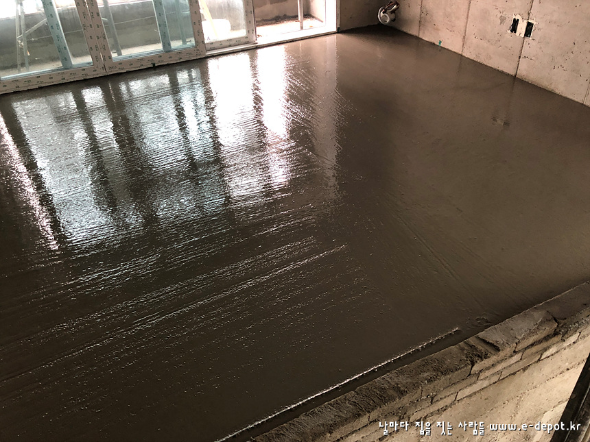 바닥몰탈 타설을 완료하였습니다. 수분이 어느정도 빠질때까지 기다렸다가 면고르기 작업을 진행하도록 합니다.