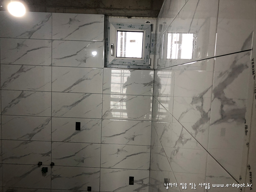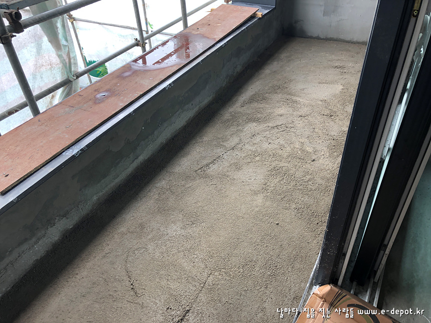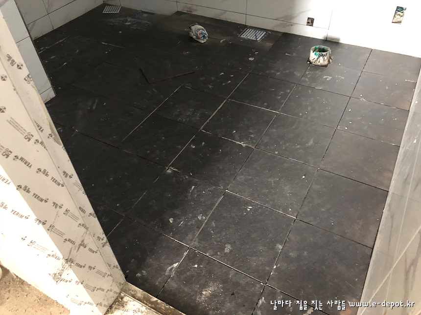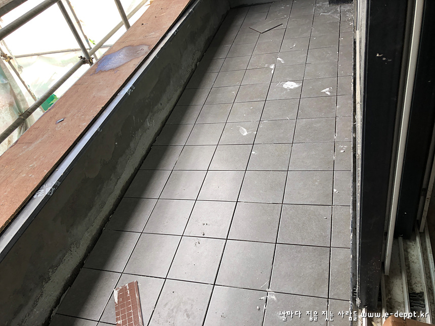 화장실, 발코니 등의 타일 붙임 사진입니다.