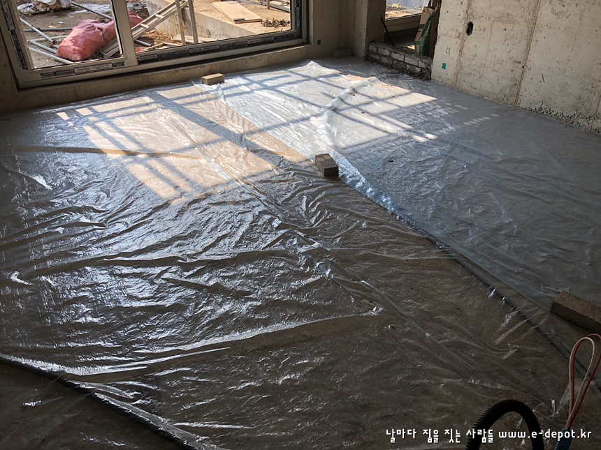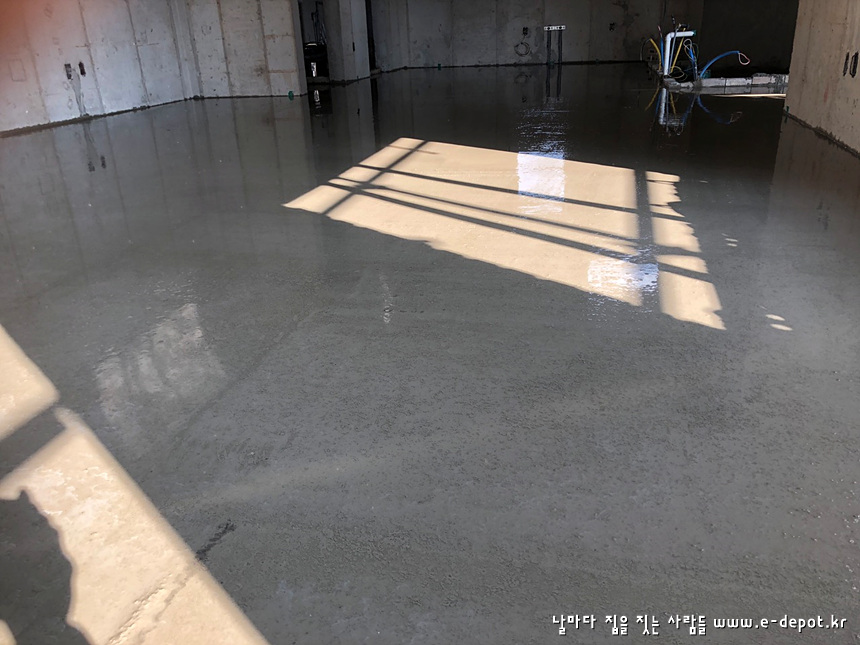 바닥몰탈타설 후 양생기간을 충분히 가지도록 합니다. 하절기에도 보통 3일이상 양생을 시킨 후 출입을 하게되는데요. 공정이 급하지 않다면 1주일정도 충분히 양생해 주는것도 좋습니다.
