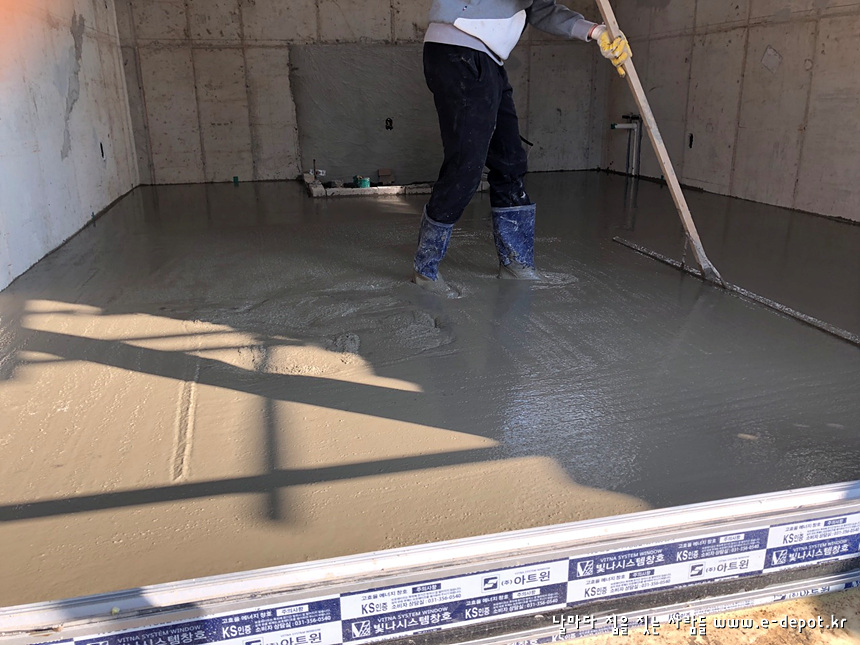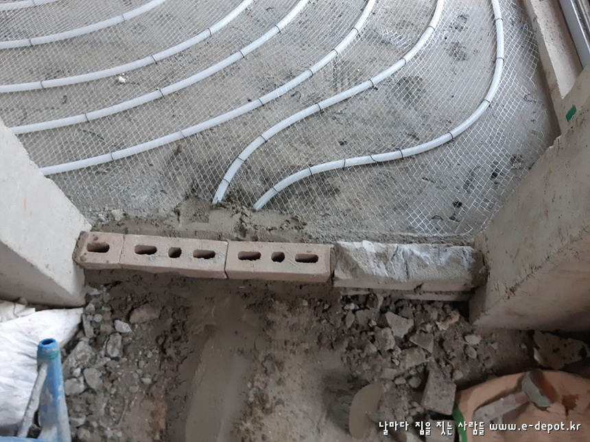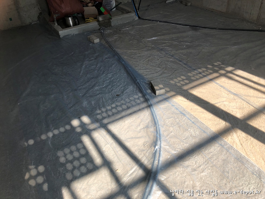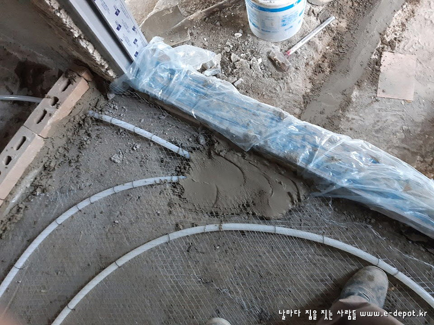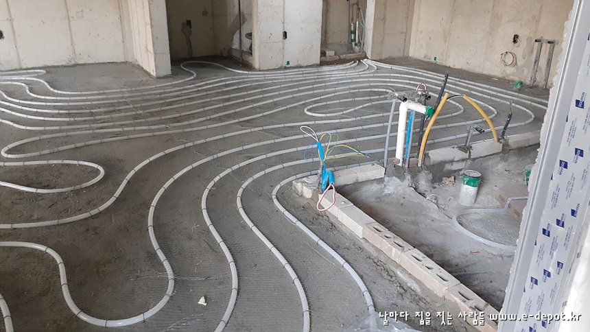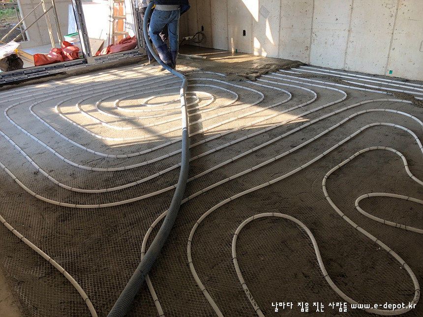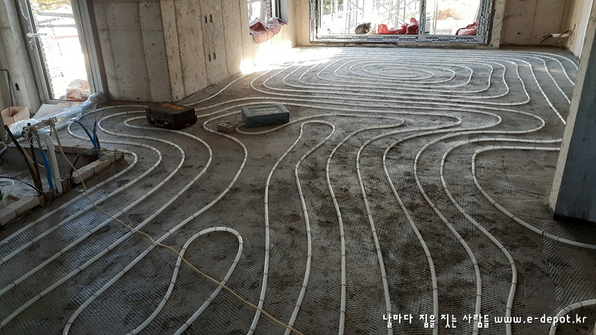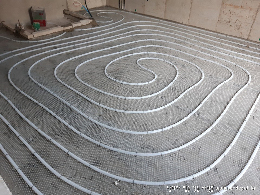 - 콘크리트바닥 > 단열재깔기 > 난방코일깔기 > 몰탈타설