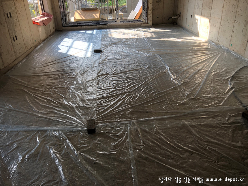 단열기포 타설전에 필름을 깔아 주었습니다.