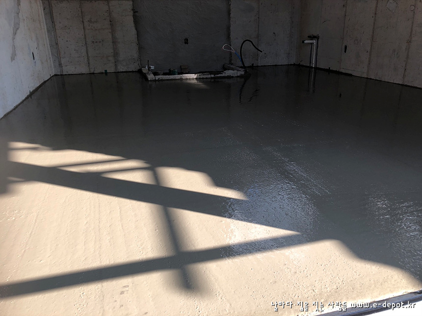 이번 작업은 방수공사 직후에 진행되는 바닥몰탈타설 작업입니다.