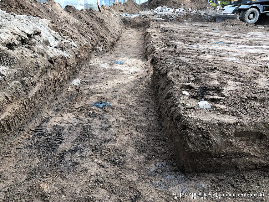 터파기가 무 자르듯이 정확하게 될수는 없지만 가능한 반듯하게 터파기 하도록 합니다.