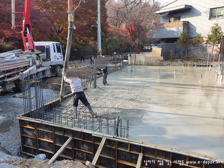 날마다집을짓는사람들의 방학동 근생주택신축사례. 기초터파기,정화조매립,버림콘크리트,기초철근배근,거푸집조성,콘크리트타설과정이었습니다.