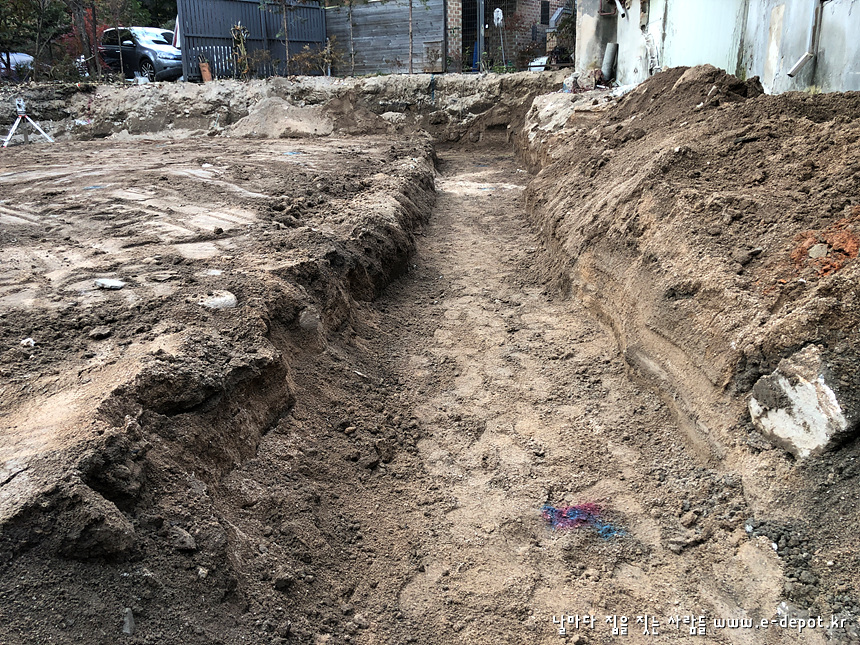 터파기가 무 자르듯이 정확하게 될수는 없지만 가능한 반듯하게 터파기 하도록 합니다.