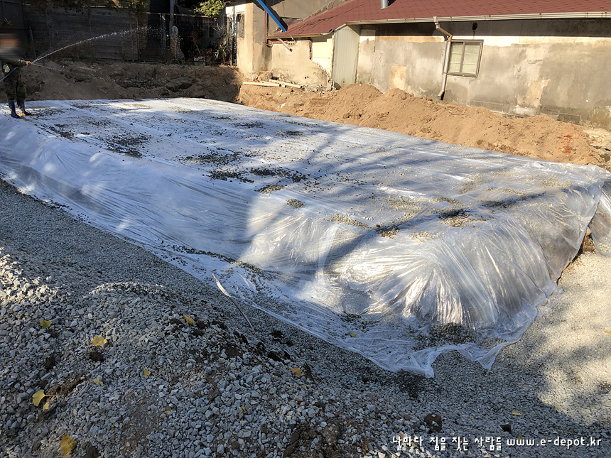 버림 콘크리트 타설 전 필름(비닐)을 깔아 주도록 합니다.