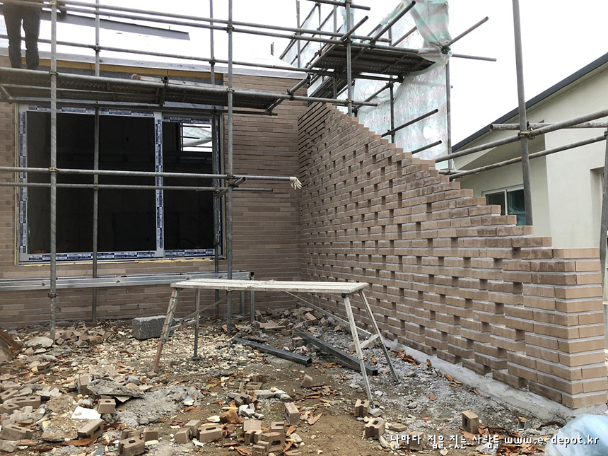 우측에서 바라본 치장벽돌 시공 사진입니다.