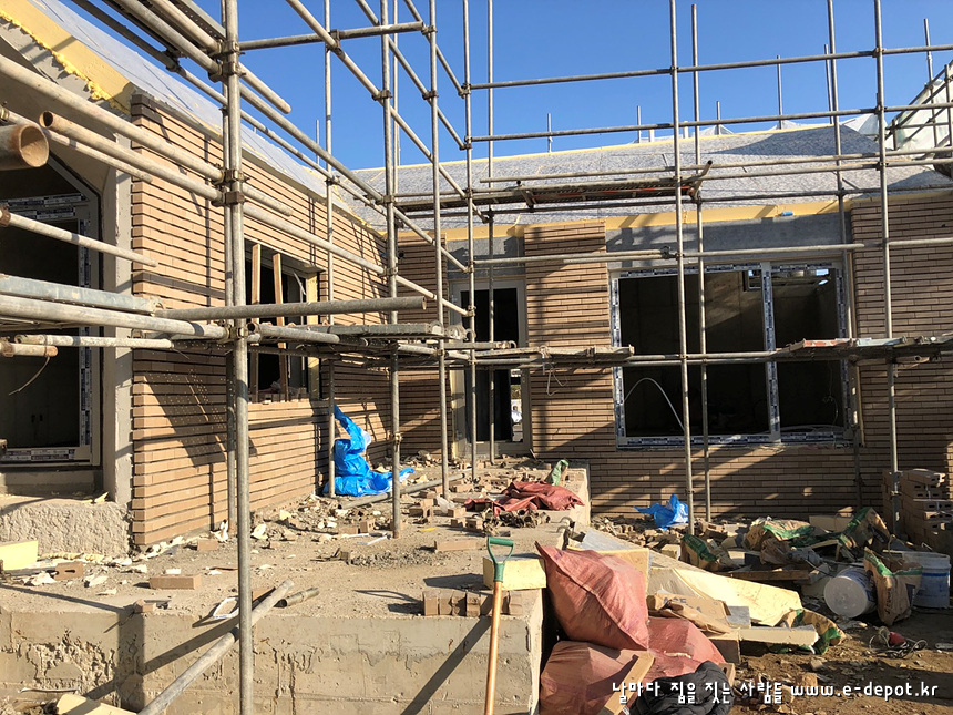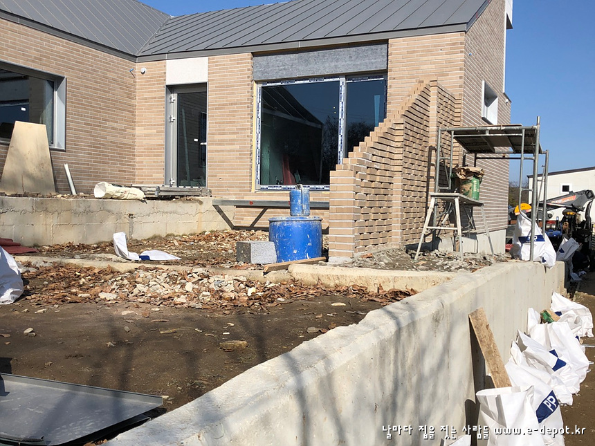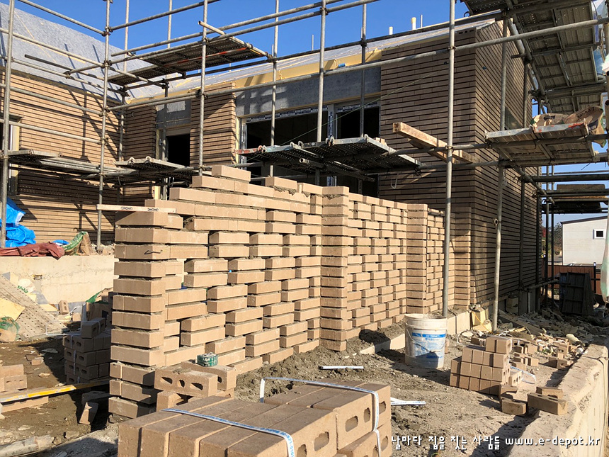 연천동동마을 전원주택시공사례. 외부 치장벽돌쌓고 벽돌줄눈시공까지의 공사과정입니다.