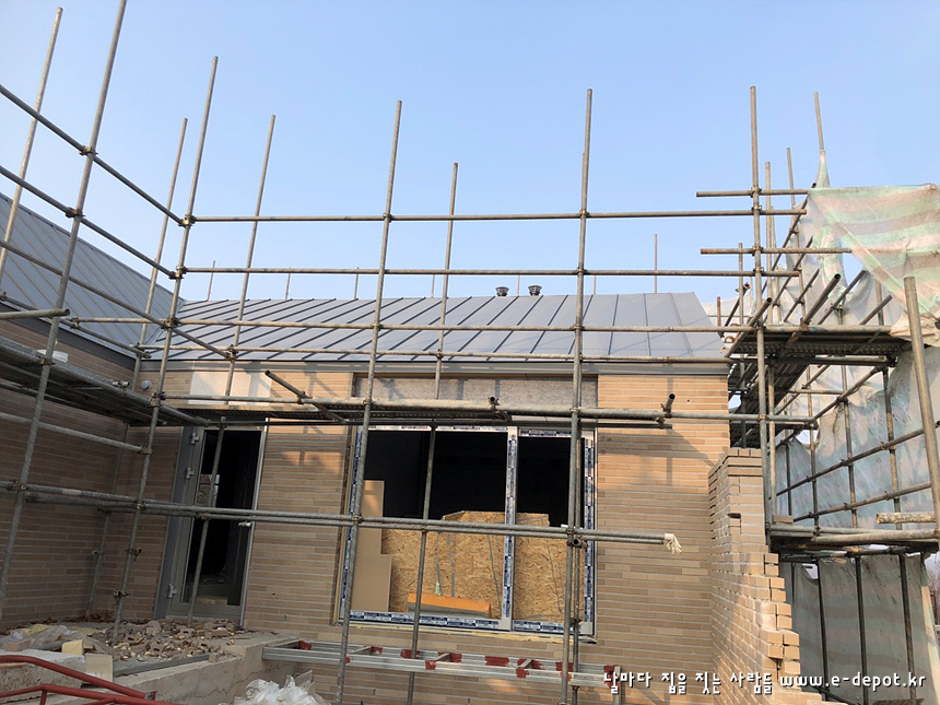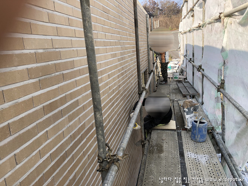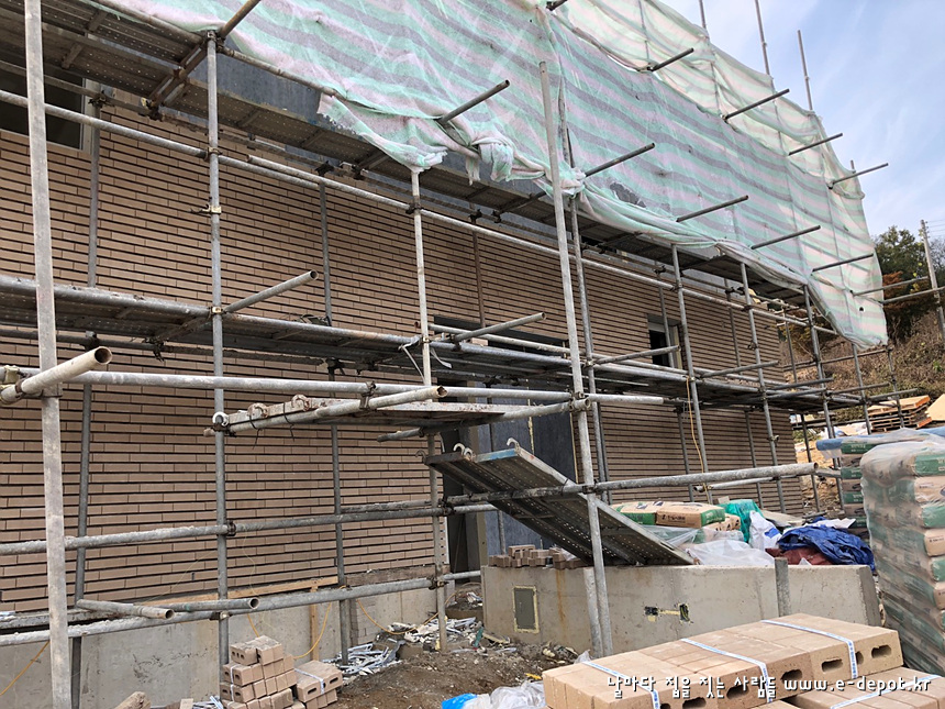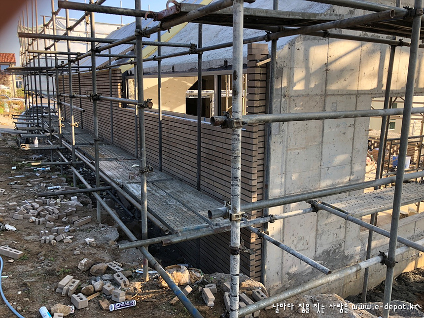 연천동동마을 전원주택시공사례. 외부 치장벽돌쌓고 벽돌줄눈시공까지의 공사과정입니다.