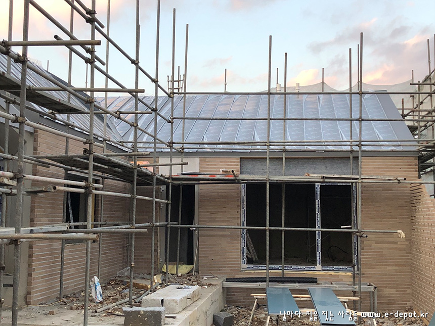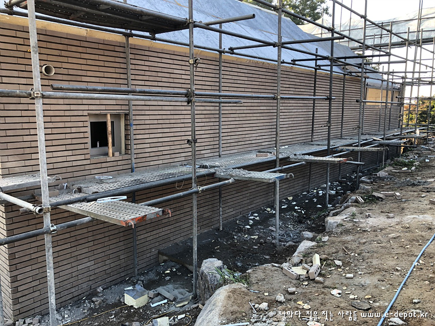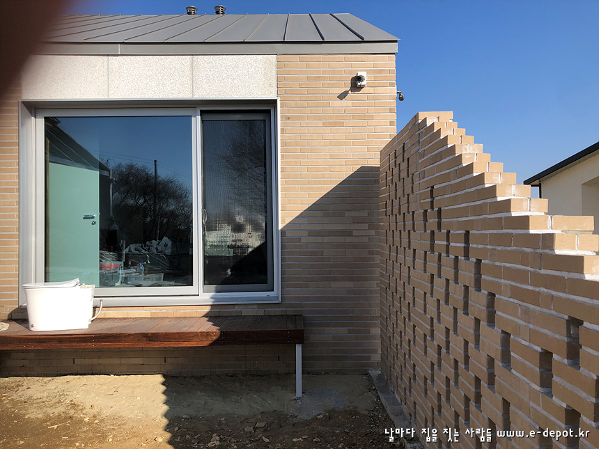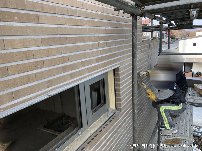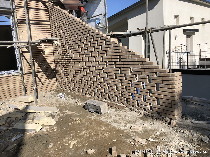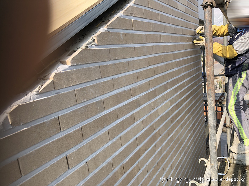우측 배면에서 바라본 치장벽돌 시공사진입니다.