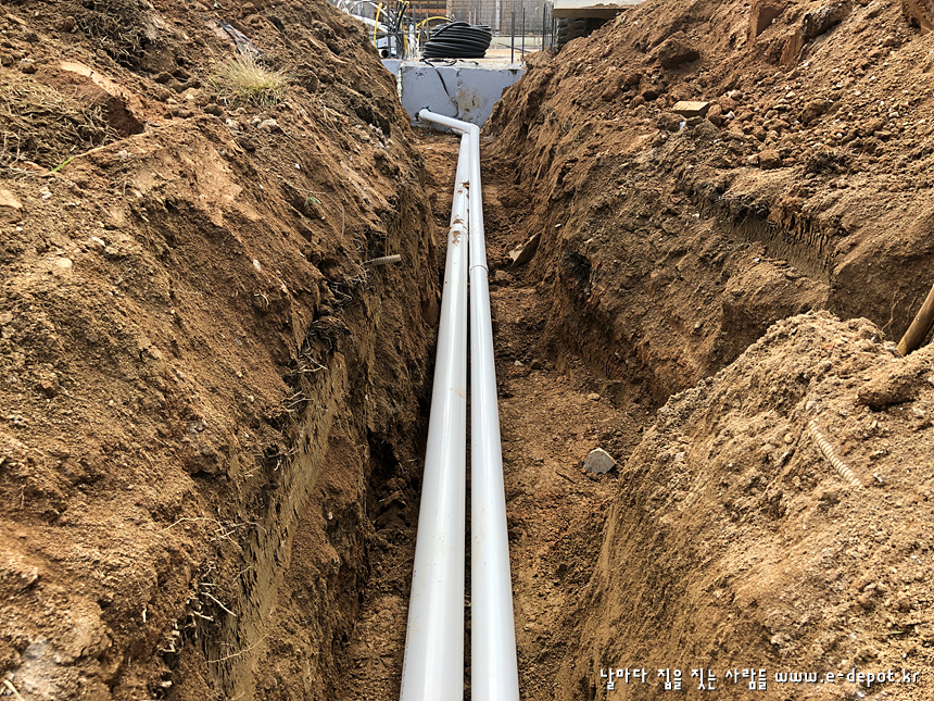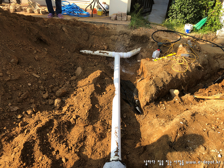 별도의 수도계량기 추가신청이 안되는 관계로 기존 건물에서 사용하는 급수관에 신축 급수관을 연결하였습니다.