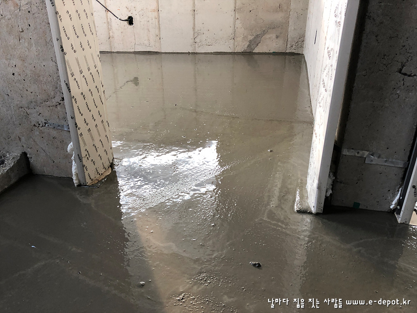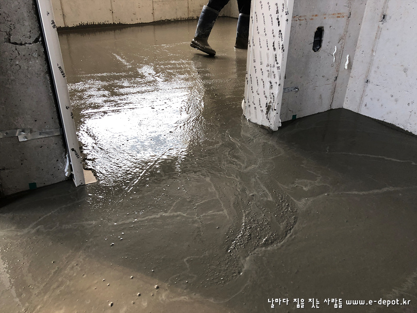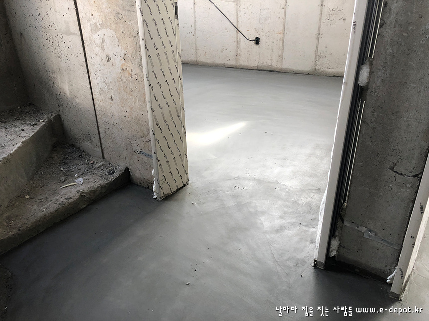 바닥몰탈 타설작업이 완료되면 완전히 양생되기 전에 몇차례 쇠흙손을 이용하여 면고르기를 합니다.