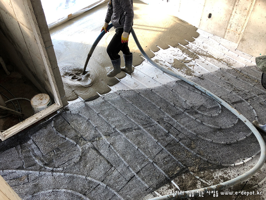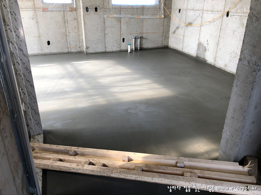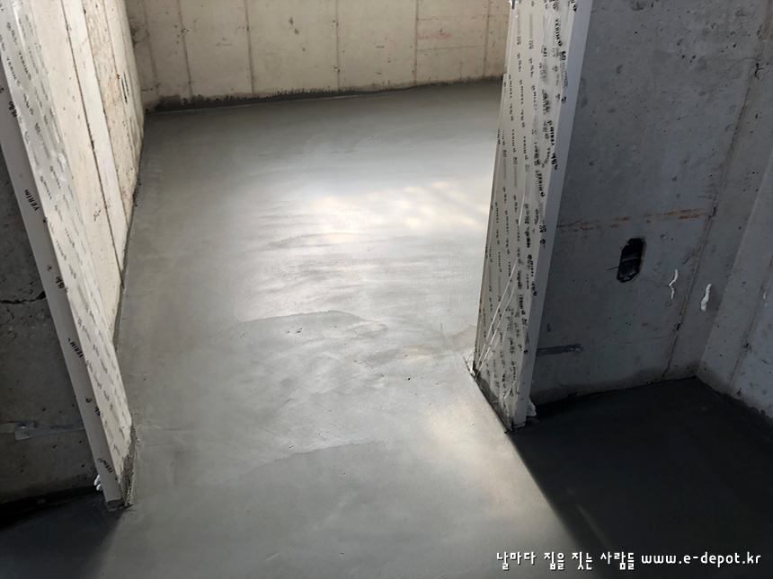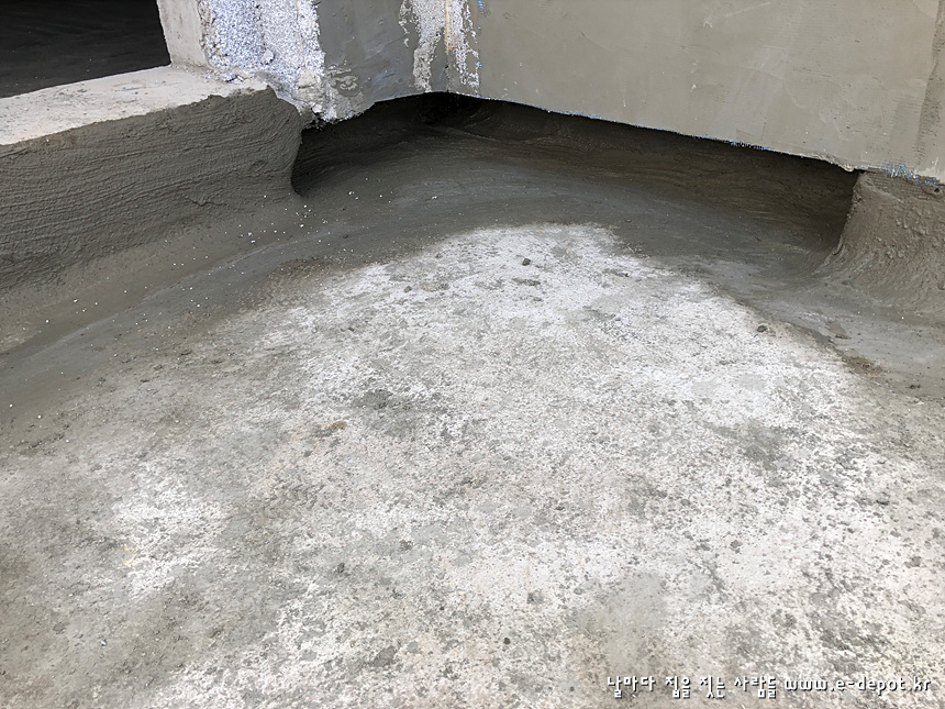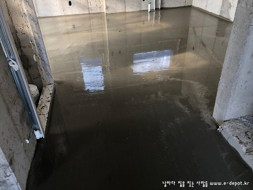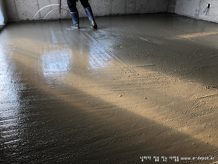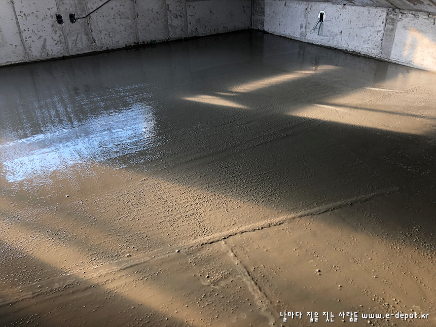 바닥몰탈 타설작업이 완료되면 완전히 양생되기 전에 몇차례 쇠흙손을 이용하여 면고르기를 합니다.