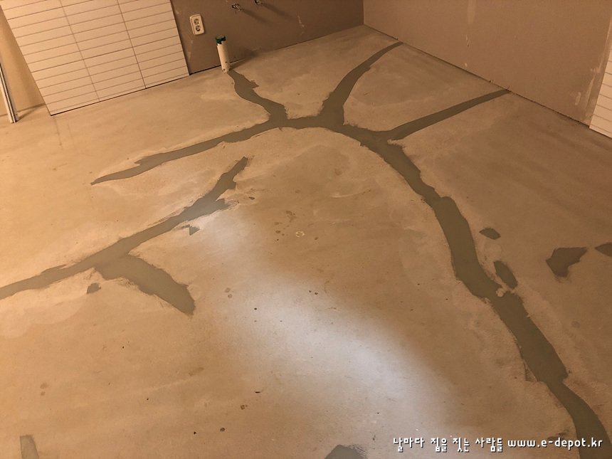 방바닥 크랙부위 우레탄 보강 사진입니다. (건축주가 원해서 보강작업을 해 주었습니다.)