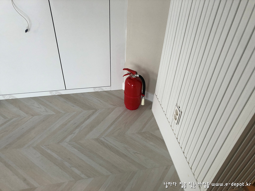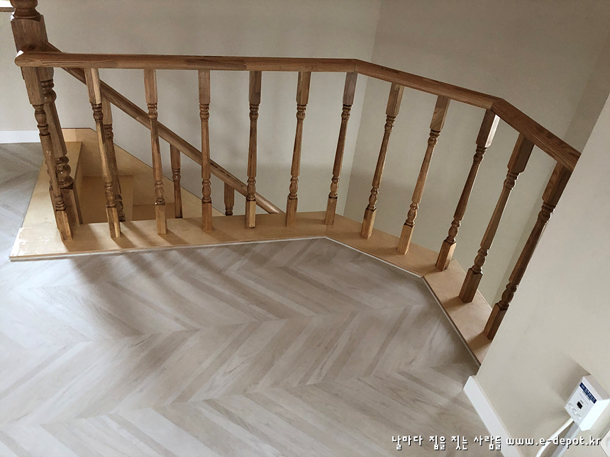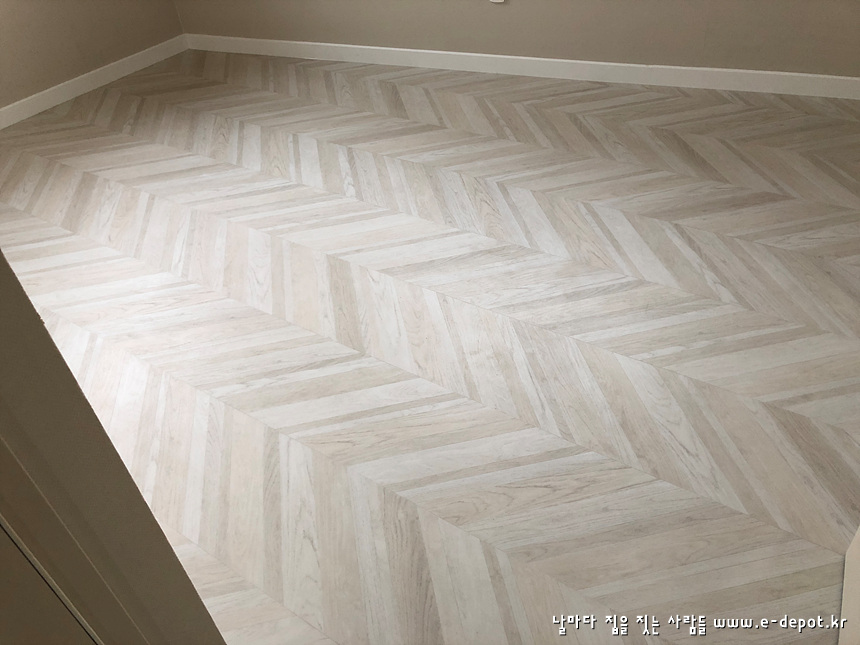 바닥 강마루 헤링본스타일 시공사진입니다.