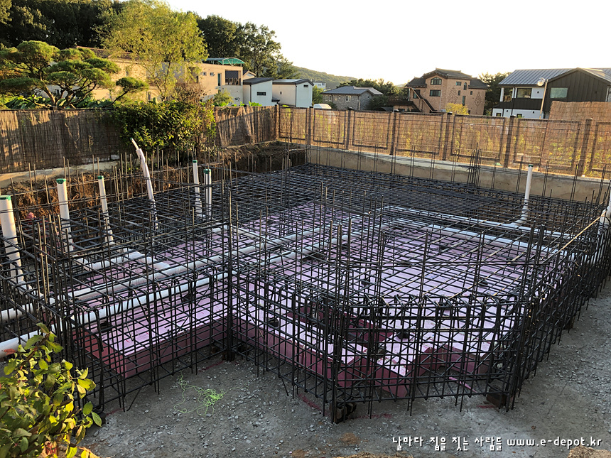 기초바닥에 필름깔고 버림타설을 합니다. 버림타설사진은 패스~