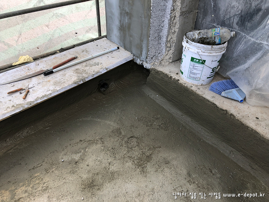 발코니 코너부위 우레탄 방수전 액체 방수 보강사진입니다.