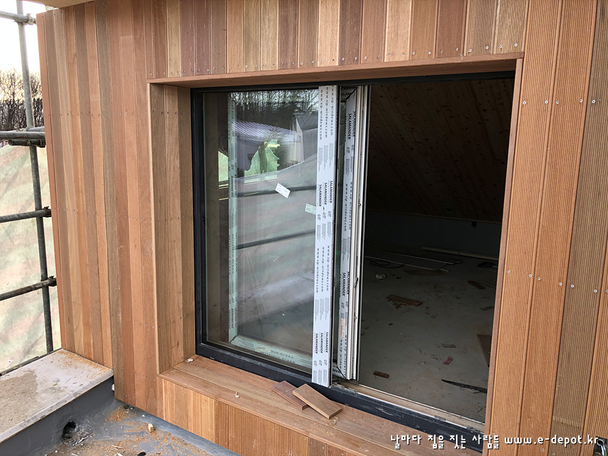 단열재를 선부착하는 경우와 후부착하는 경우가 있는데 선,후 작업의 장단점이 있으니 마감에 따라 선택을 하면 되겠습니다. 선부착시 창호설치시 창호주변에 단열재를 임시 제거한 후 창호에 누수가 발생하지 않도록 기밀하게 창호설치를마무리 한 후 창호주변에 단열재를 재시공하여야 합니다. 선,후 부착을 막론하고 창호주변의 기밀작업은 선택이 아닌 필수사항이니 반드시 기밀작업하세요~