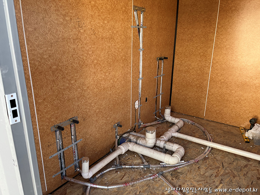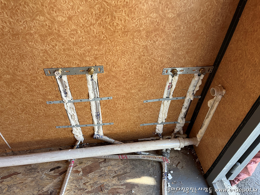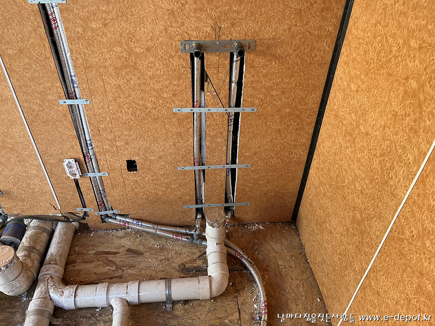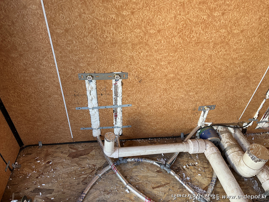 급수배관은 외부로 노출되지 않도록 벽체에 매립 완료~!